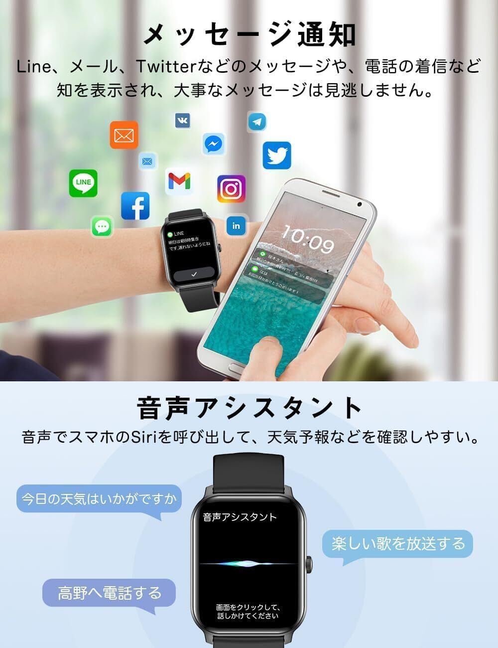 ・特徴:1.9インチ大画面、Bluetooth5.3通話機能、100種類運動モード、活動量計、着信・メッセージ通知、音楽再生、防水機能