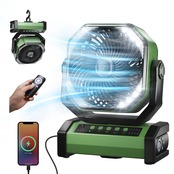 4段階の風量調節やタイマー機能を搭載しており、使用シーンに応じた最適な風を提供します。また、16枚の高輝度LEDライトが内蔵されており、暗い場所でも明るさを確保し、キャンプの夜を彩ります。吊り下げタイプなので、テント内やお好きな場所に簡単に取り付けられます。