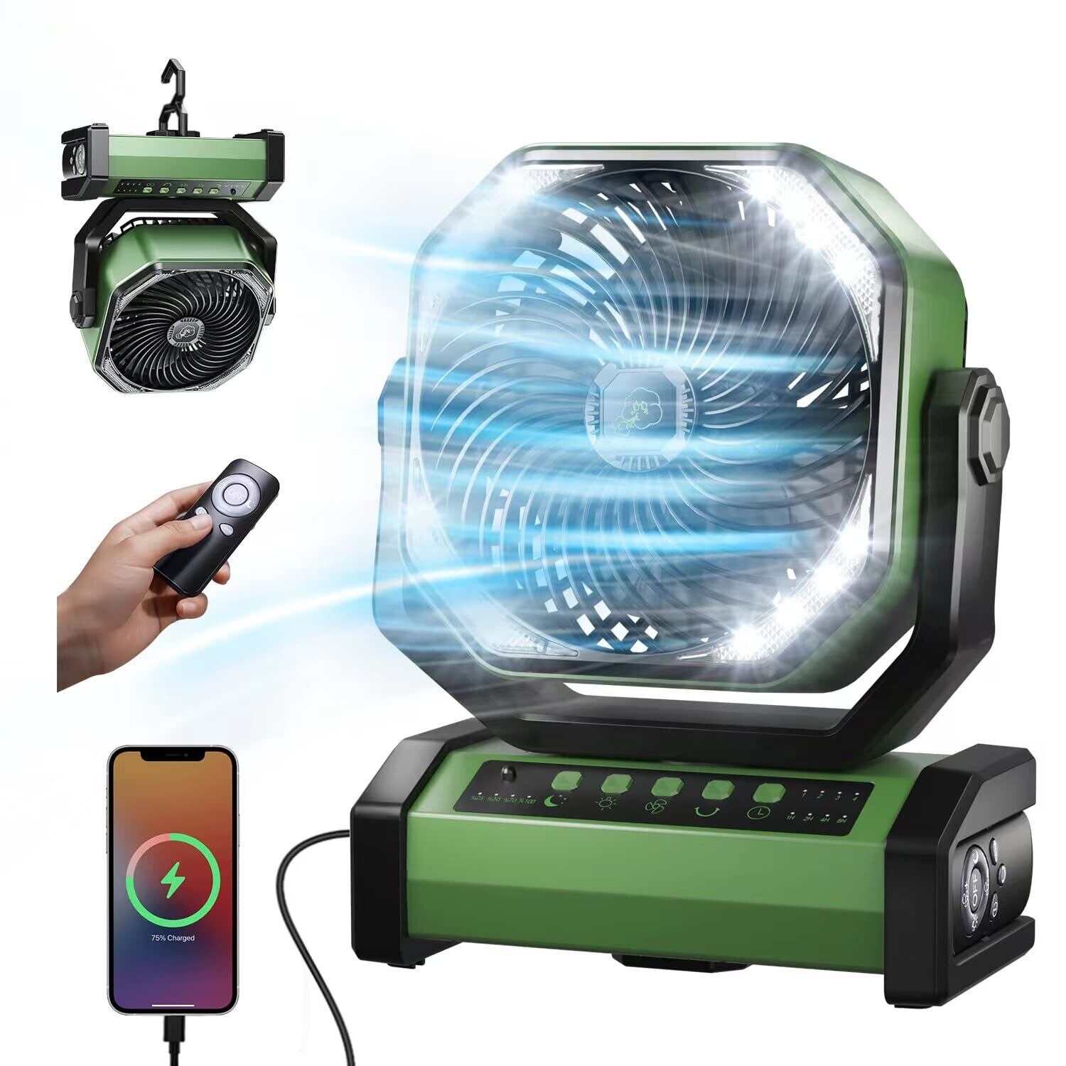 【特価セール】キャンプ 扇風機 20000mAh大容量 最大60時間連続使用 Type-C充電式 吊り下げ タイマー機能 自動首振りリモコン付き 風量4段階調節 16枚高輝度LEDライト搭載 二重反転ファン 小型 サーキュレーター 扇風機 卓上扇風機 扇風機 防災 キャンプ用品 テントマット コンパクト 持ち運び便利