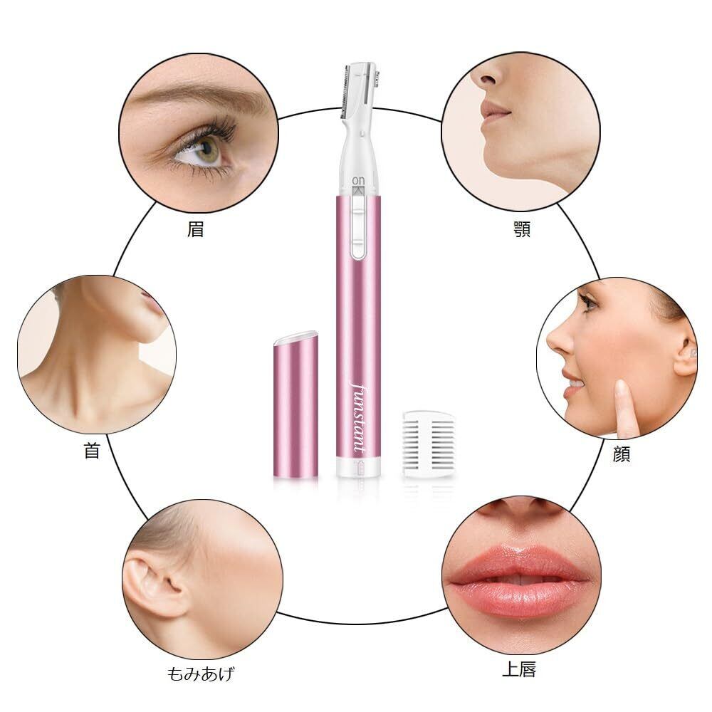 眉毛シェーバー 眉毛カッター フェイスシェーバー レディースシェーバー 女性 電動シェーバー まゆげそり 産毛 顔そり長さ調整眉用コーム付き 替刃付き 乾電池式