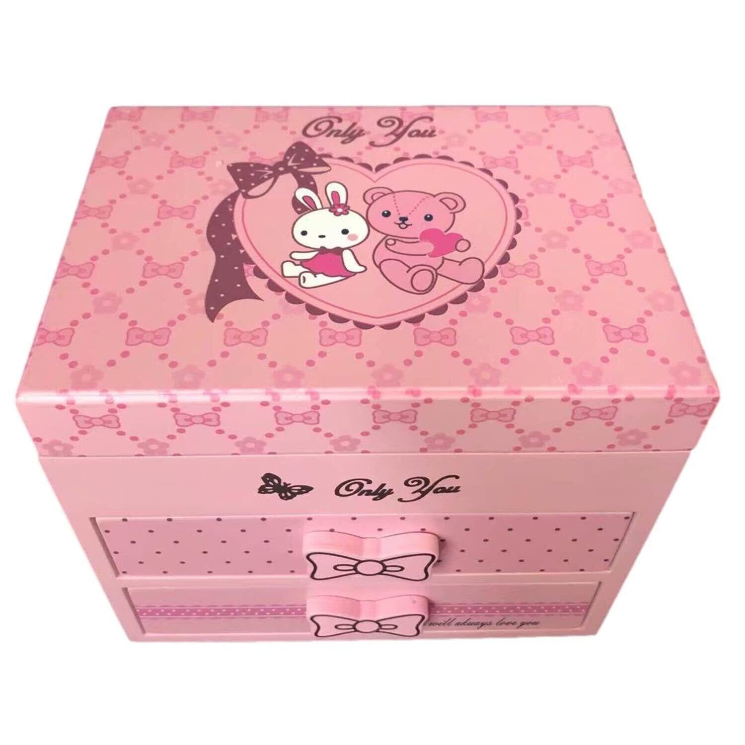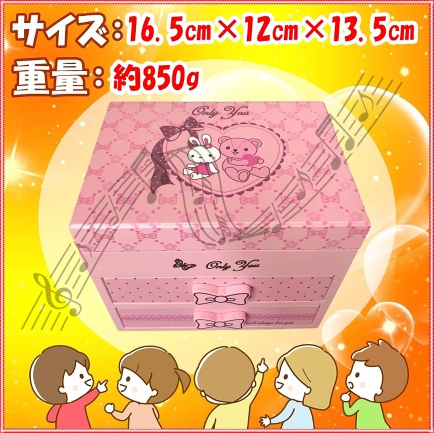 木製 子供用 オルゴール付 アクセサリー ケース ジュエリー ボックス 女の子 鏡付き おもちゃ箱 (クマ・ウサギ)