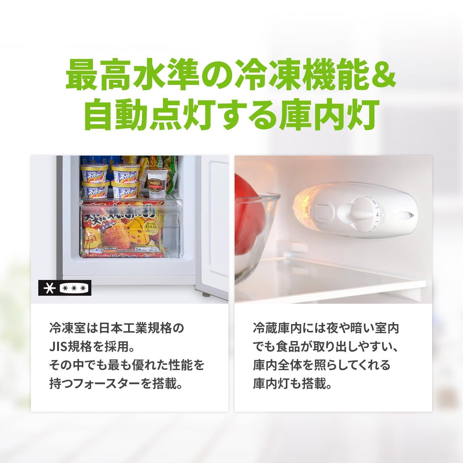 この冷蔵庫は静音設計で稼働音が気にならず、リビングや寝室に置いても安心です。家庭用としても、オフィス用としても大変便利で、快適な生活空間を提供します。冷凍室は30L、冷蔵庫は87Lとゆとりのあるスペースが魅力です。