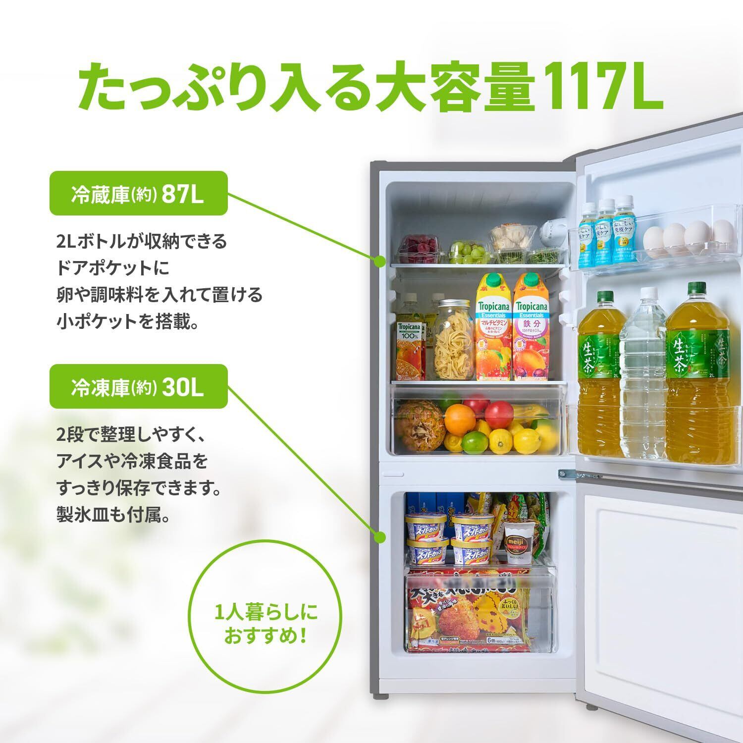 [定格内容積]約117L(冷蔵:87L/冷凍:30L)