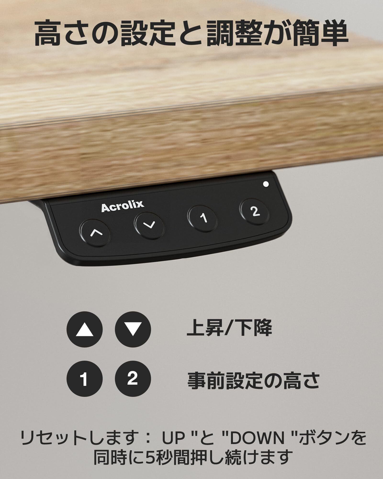 この『Acrolix 電動昇降デスク』で、快適でスタイリッシュな作業環境を実現しましょう!新着商品として数量限定の特別な機会をお見逃しなく!ご不明点やご質問がございましたら、お気軽にご連絡ください!
