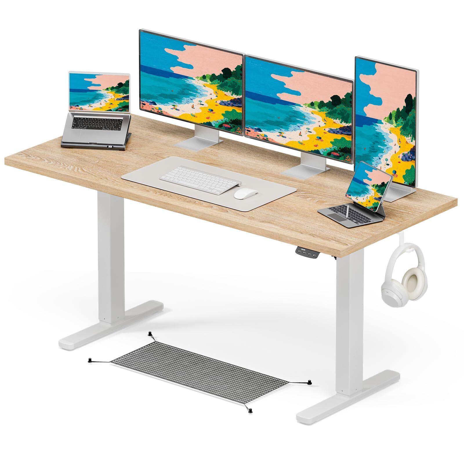 Acrolix 電動昇降デスク昇降式 上下昇降デスクスタンディング幅160cm 耐荷重80kg 下 天板ケーブルラック配線隠し高さ調整 静音 収納フック付き 机 作業机 テレワーク pcナチュラル木目調