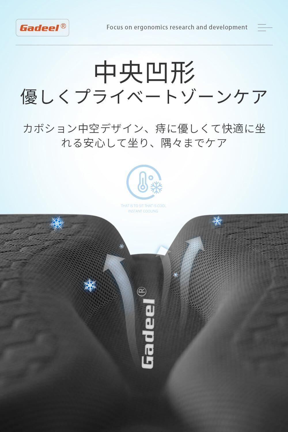【新型内凹ゲルクッション、体圧を分散】 Gadeelゲルクッションは、弧面設計を採用し、座り心地が弾性に富み、自然に足を支えて、足の圧力を分散し、足の不快感を軽減します。また、中央のくぼみの設計により、痔や男性の睾丸の不必要な圧迫を効果的に予防し、身体への負担を軽減し、座り姿勢の快適性を高め、血液循環に影響を与えません。