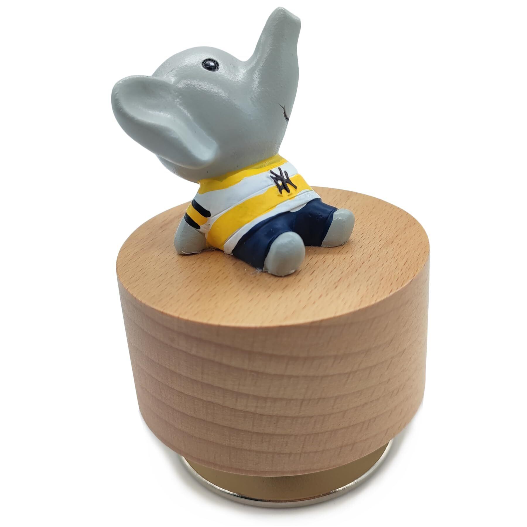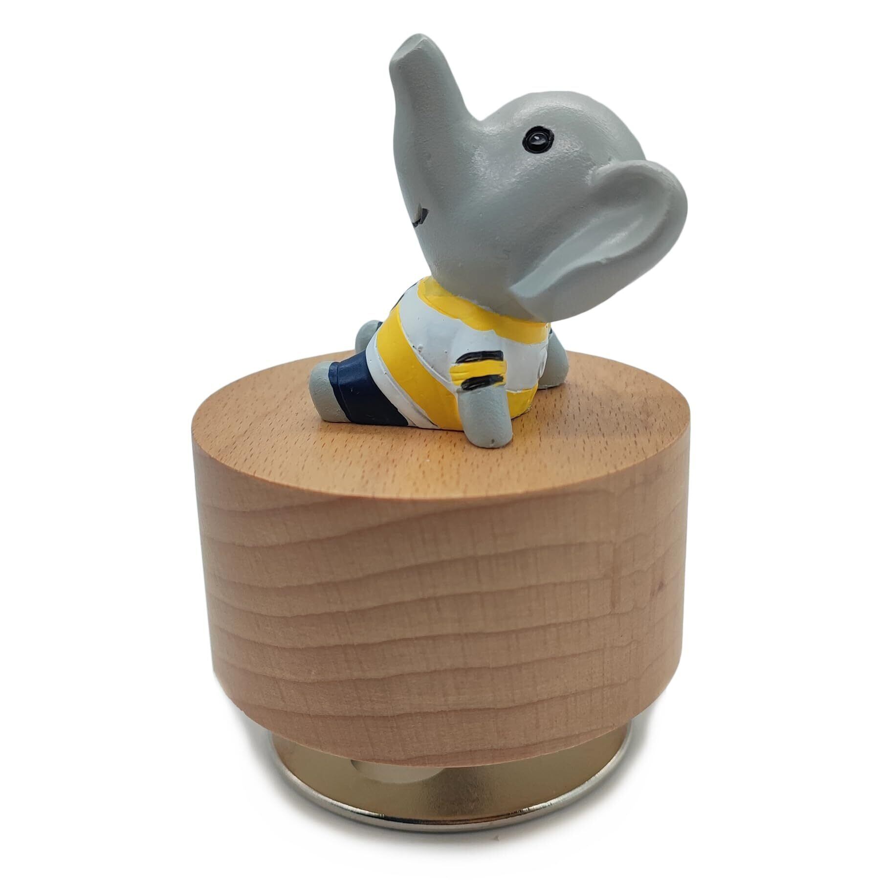 ミニ木製アニマル回転オルゴール かわいい象の飾り付き (曲:You are My Sunshine)