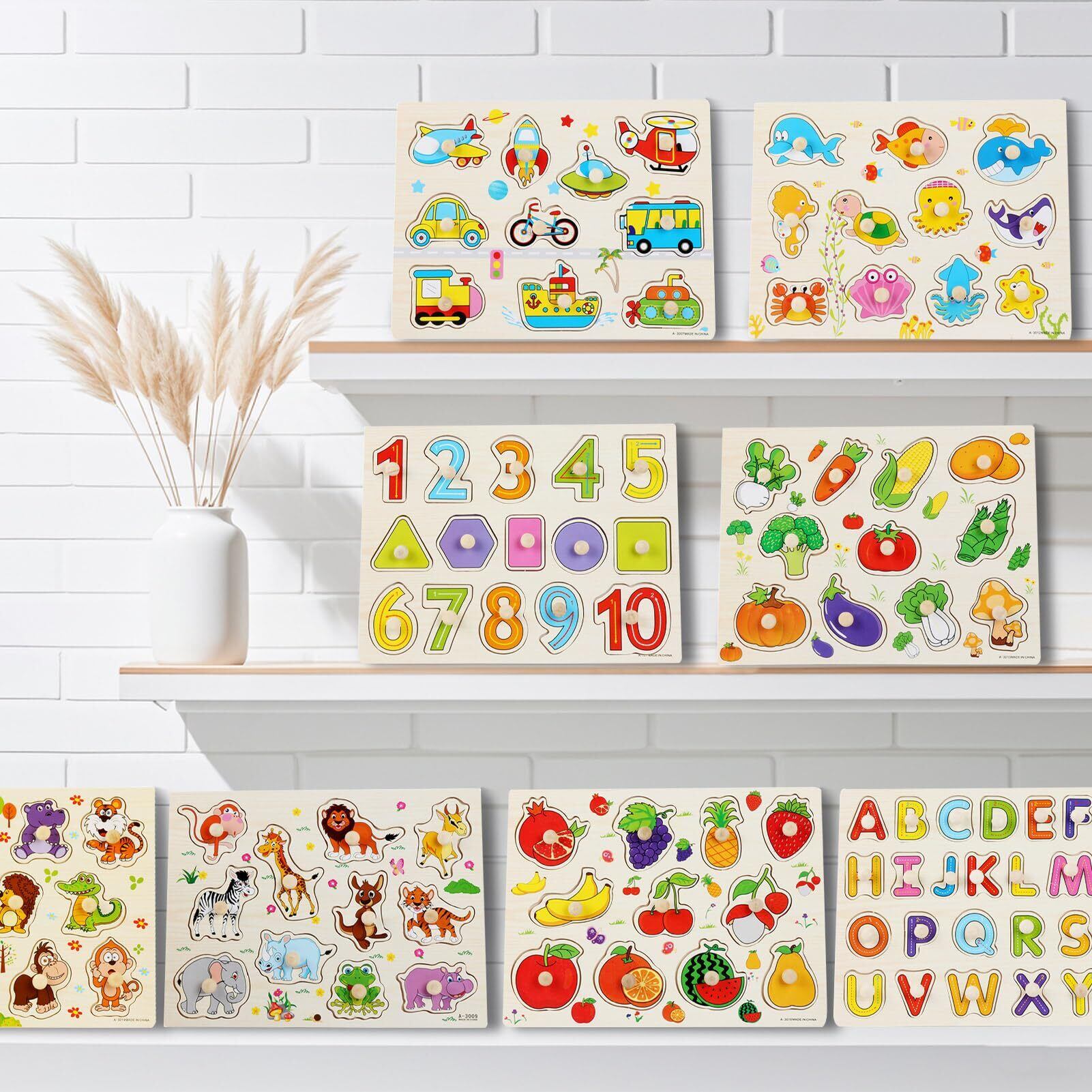 【モンテッソーリ・早期開発】各セットは色んな可愛いピースが含まれています。こども向けの木製パズル知育玩具、豊富な形展開でご用意しております。お子様が遊び中に野生動物、海洋生物、乗り物、野菜、果物、数字形状、英語の字母などの知識を学べます!商品写真によってお好きなタイプをお選びください。