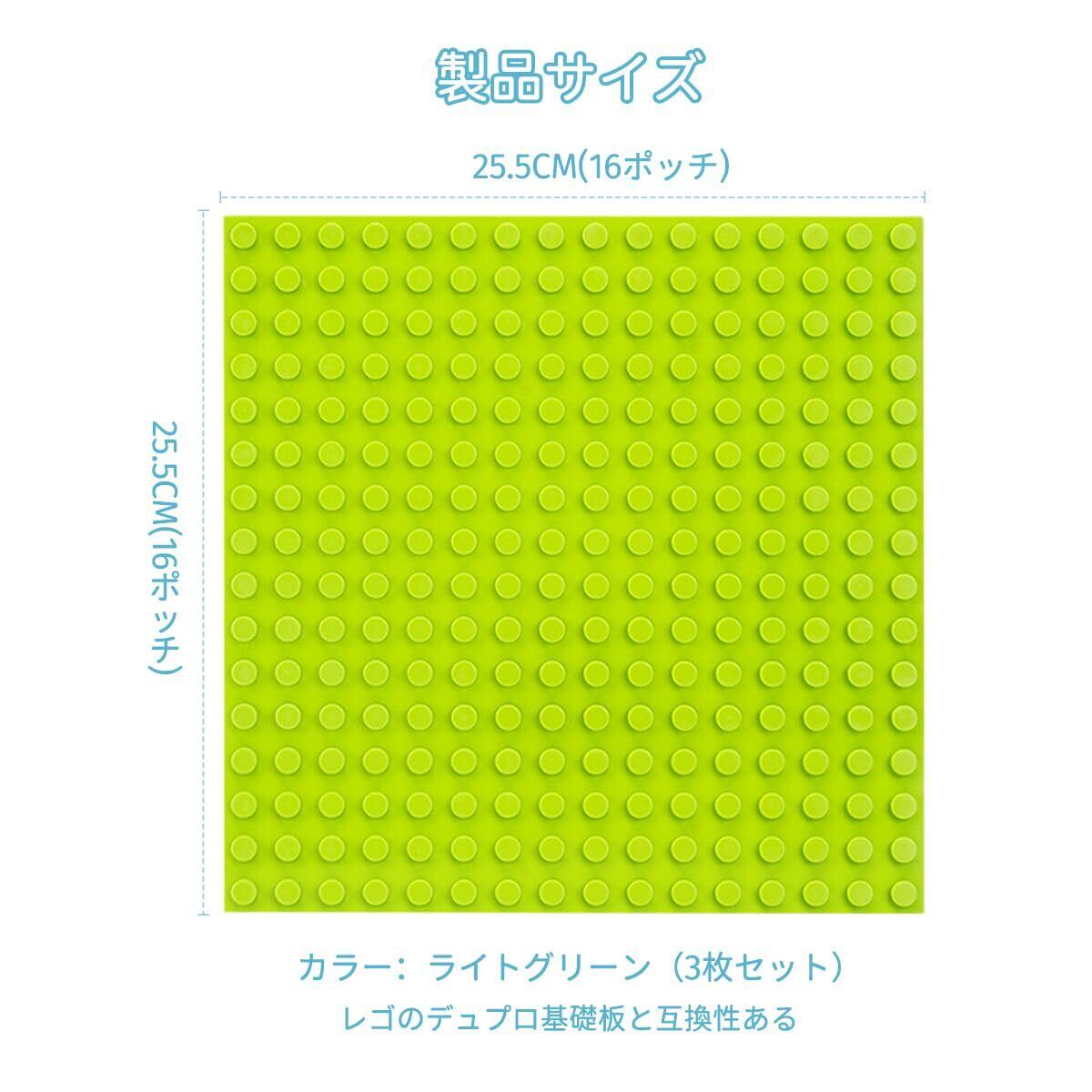 【大きなブロックに適用】本製品はブロック板の3枚セットです。製品内容:ライトグリーン×3 基礎板サイズ:25.5cm×25.5cm(16ポッチx16ポッチ)※レゴ純正品ではございませんが、レゴのデュプロ基礎板と互換性があります。この基礎板は大きなブロック( サイズ:長さ3.2cmx幅3.2cmx高さ2.3cm)に適していることに注意してください。