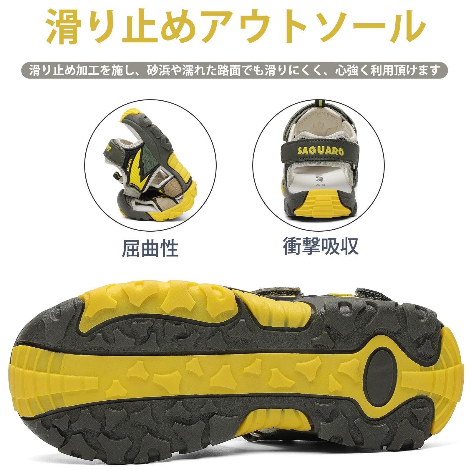 【数量限定】[SAGUARO] サンダル キッズ スポーツ ビーチサンダル 子供用 マジック つま先保護 滑り止め 男の子 女の子 アウトドア 夏用