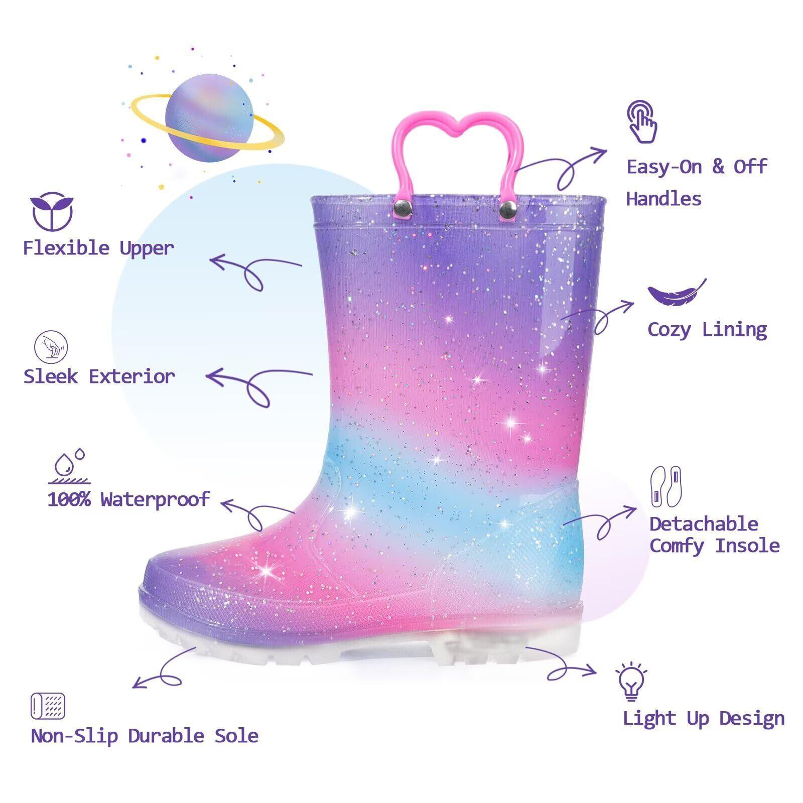 『[EUXTERPA] 長靴』は、雨の日も快適にお出かけできるキッズ用の光るレインブーツです!おしゃれでかわいいデザインは、男の子も女の子も大満足の一足です。お子様の楽しさと安全を考えて設計されたアイテムです。