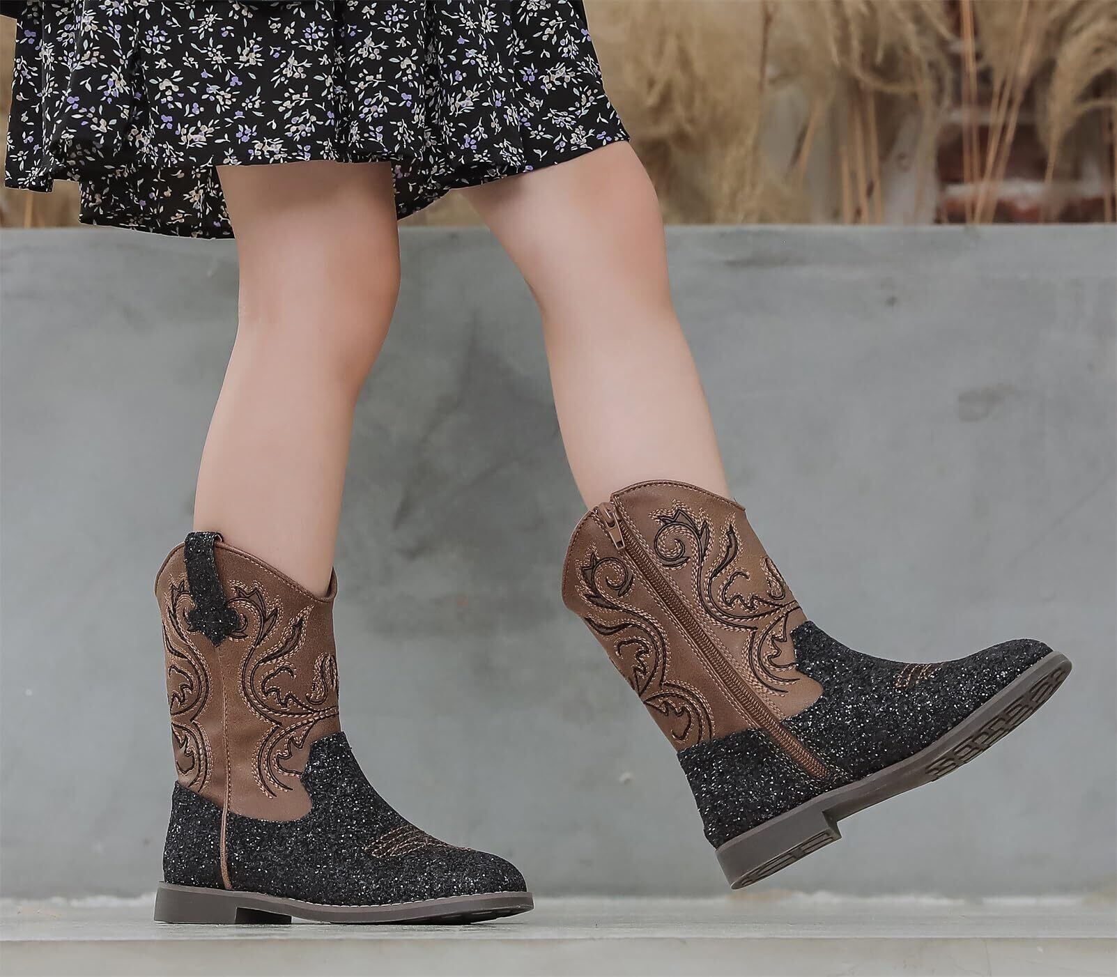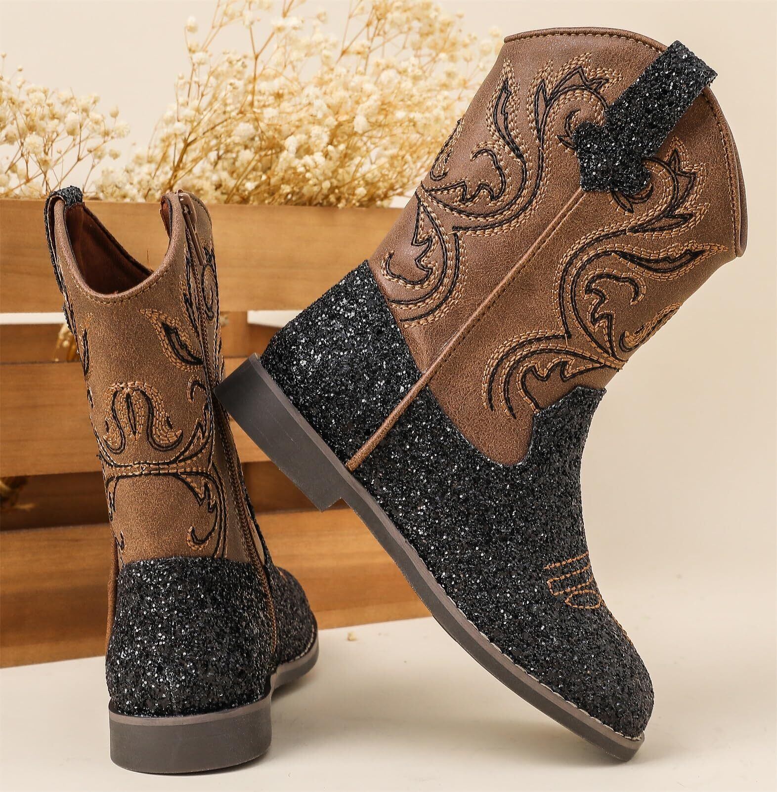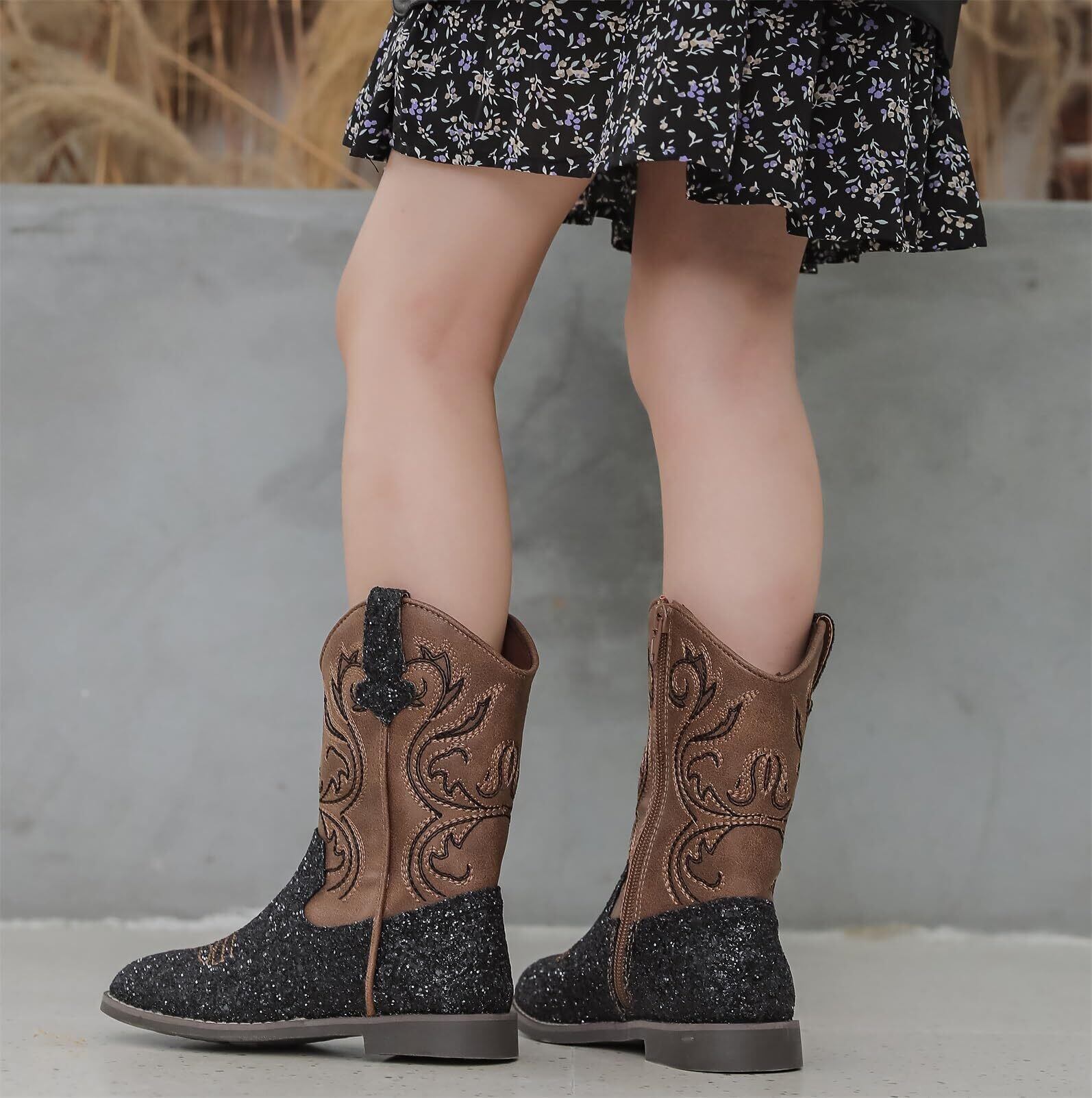 DADAWEN(ダダウン) 子供ブーツ キッズウエスタンブーツ 男の子 女の子 ミドルブーツ Vカット キラキラ ジッパー付き 卒業式 コスプレ 誕生日プレゼント