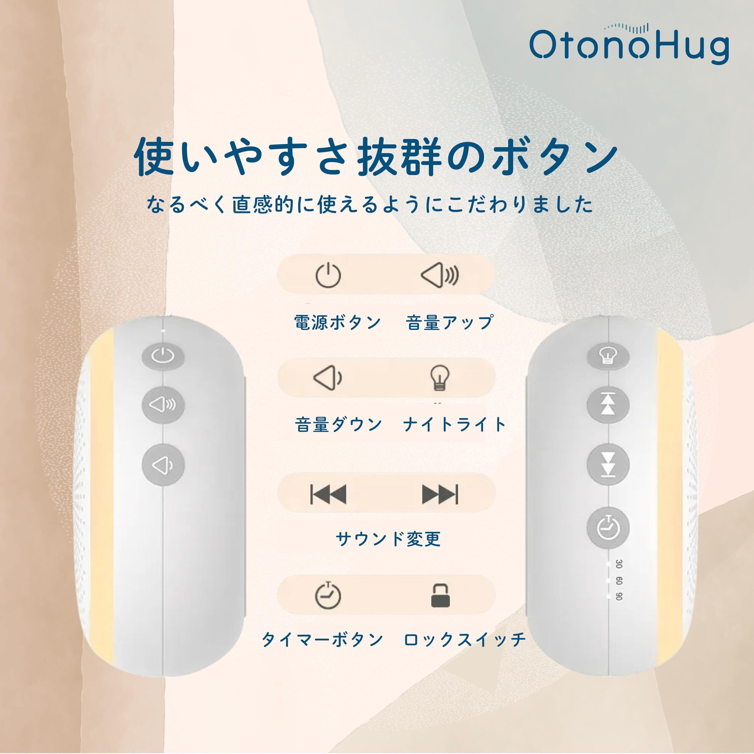 『ADESSO ホワイトノイズマシン Otonohug』は、赤ちゃんから大人まで安心してお使いいただける多機能な音響アイテムです!20種類の癒しサウンドを収録しており、寝かしつけや集中力向上に役立ちます。タイマー機能付きで、設定した時間が経過後に自動でオフになりますので、安心してご使用いただけます。