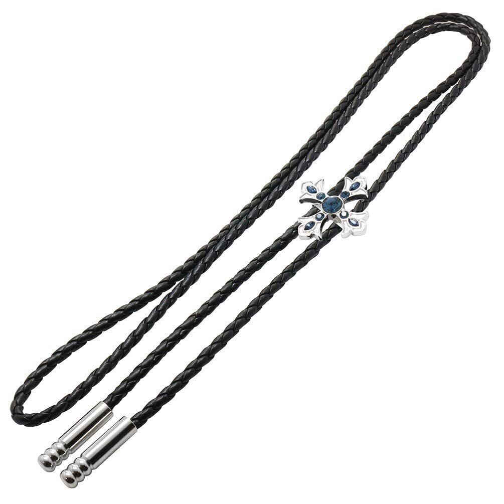 【在庫処分】[スワンク] ブルー クリスタル クロス ループタイ ネックレス ポーラータイ ポロタイ ボロタイ 日本製 lt004