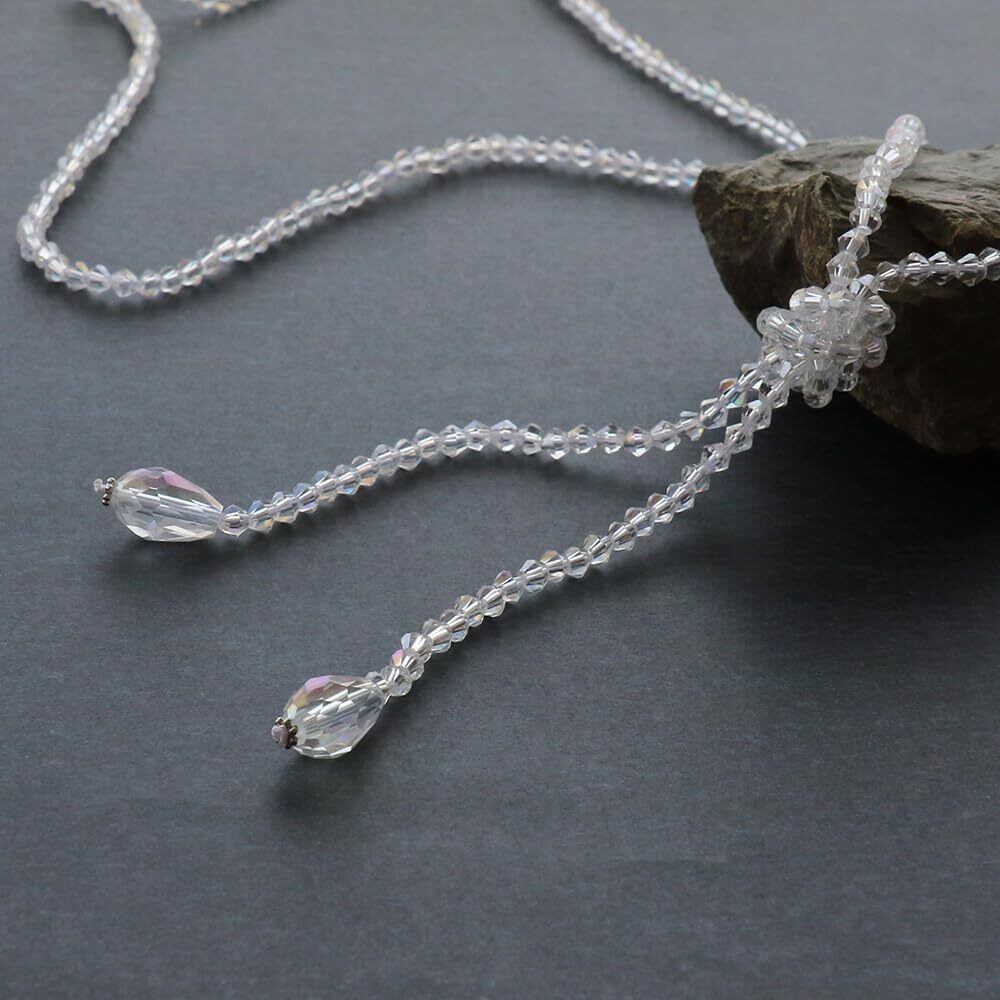 【サイズ】全長:約 102cm〜110cm/ ビーズ直径:約 0.4cm / 先端部クリスタル: 約W0.8×H1.5cm