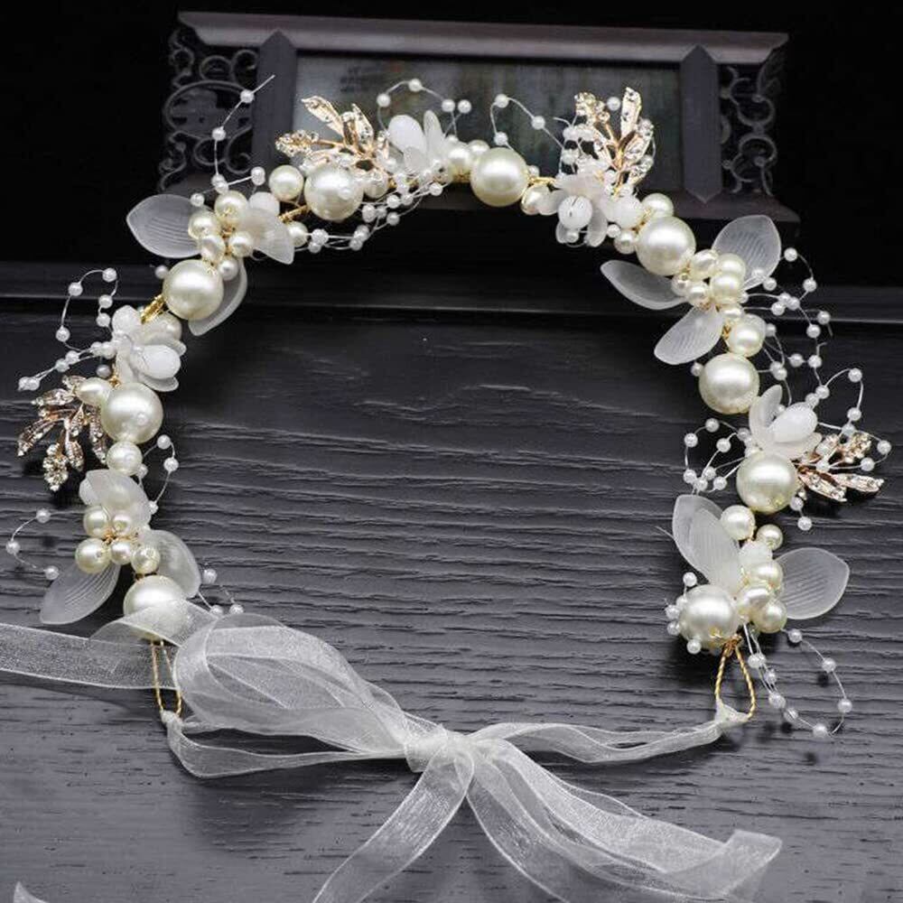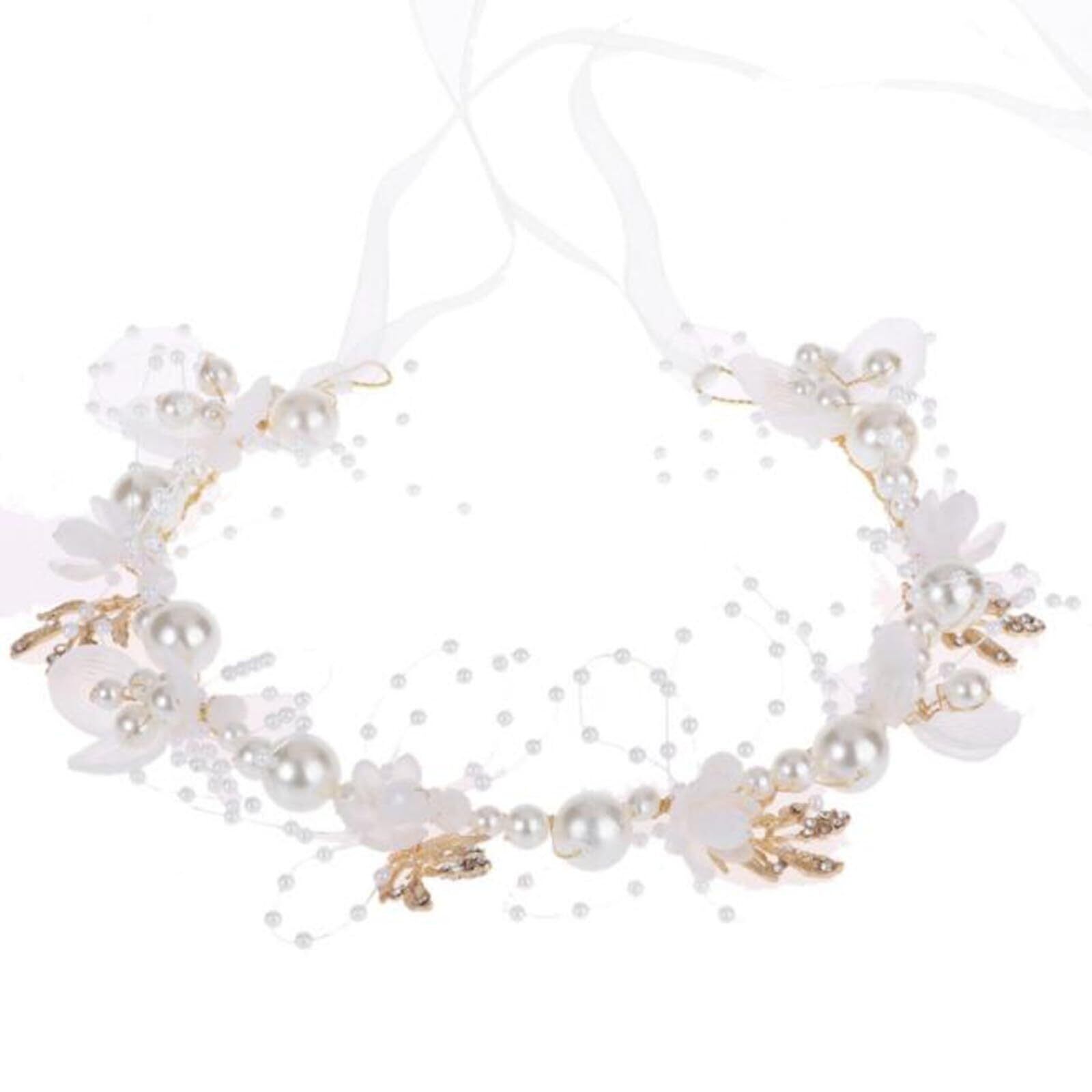 【在庫セール】サムコス 髪飾り ヘアバンド カチューシャ 花冠 クラウン 女の子 子供ヘッドドレス ヘアアクセサリー 結婚式/披露宴/卒業式/入学式/パーティー/ダンス/和装/撮影 (クラシックパール ホワイト)