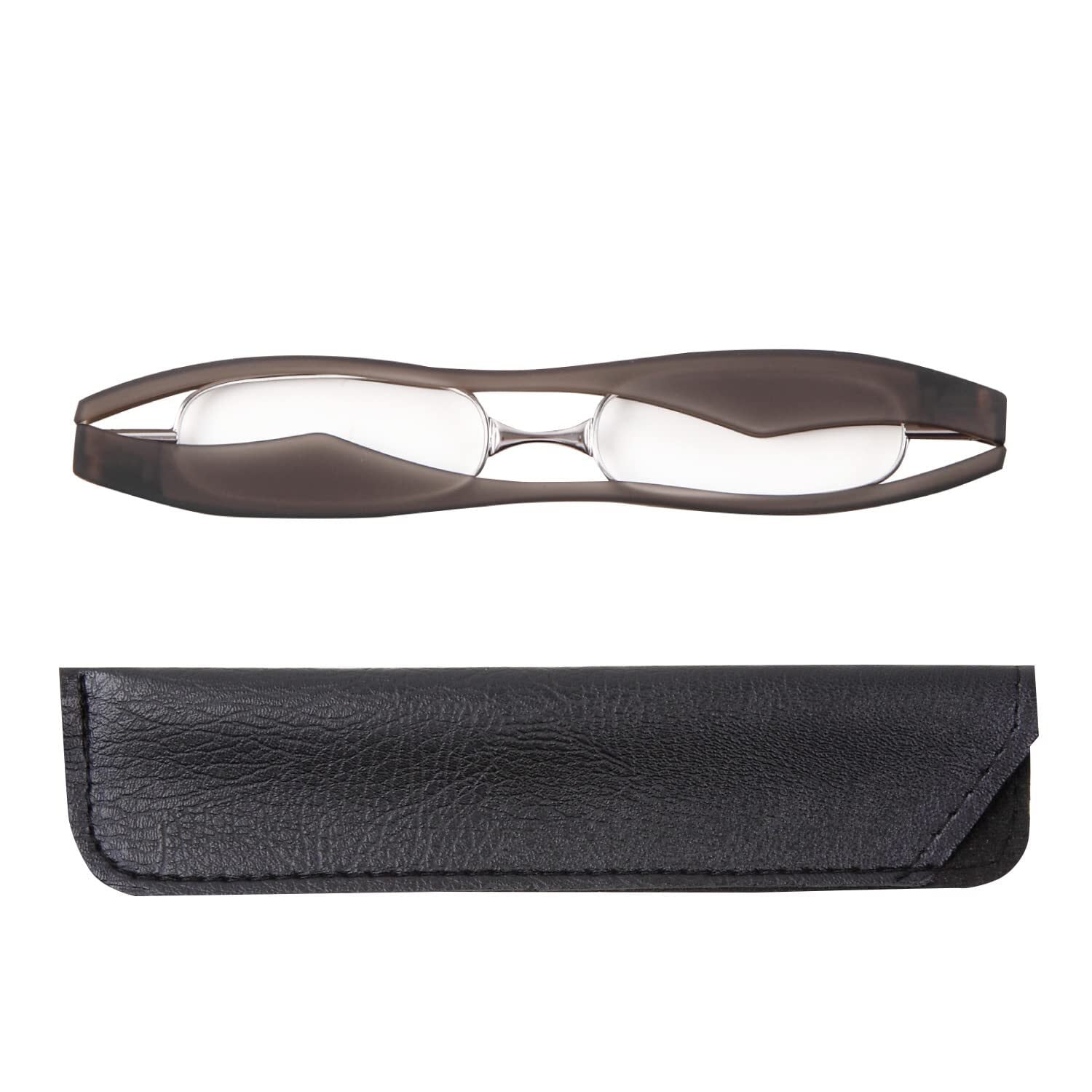 [PrePiar] 老眼鏡 1.0 ポッドリーダー グレー 薄型シニアグラス 3ヶ月ケース付きコンパクトメンズレディースおしゃれメガネ