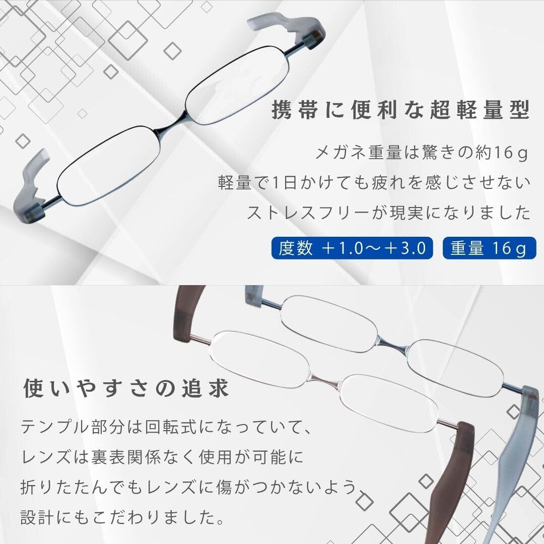 読書やパソコン作業、アウトドアでの使用など、幅広いシーンで活躍します。スタイリッシュなデザインと機能性を兼ね備えたこの老眼鏡があれば、日常生活が一層快適になります。