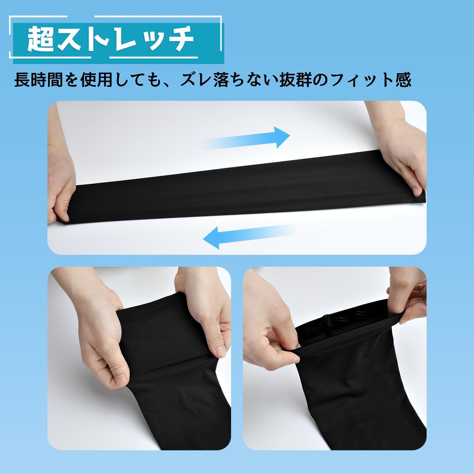 ・特徴:紫外線対策、接触冷感、UPF50+、通気性、伸縮性、滑り止め、吸汗速乾