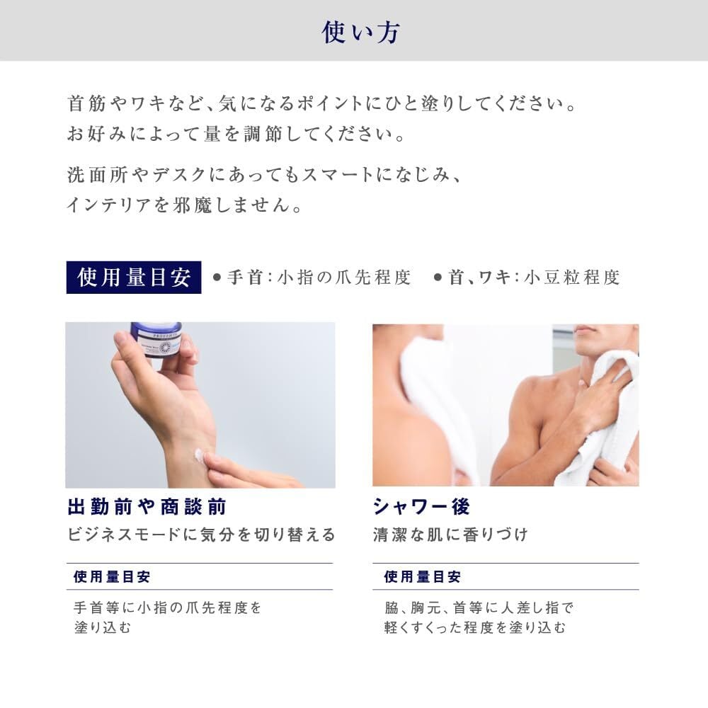ビジネスシーンからカジュアルな日常まで、このバームがあれば様々なシーンで活躍します。特別なデートや、友人との集まりの前に使用すれば、周囲の視線を引きつけること間違いなし!清潔感のある香りで、あなたの存在を印象づけます。