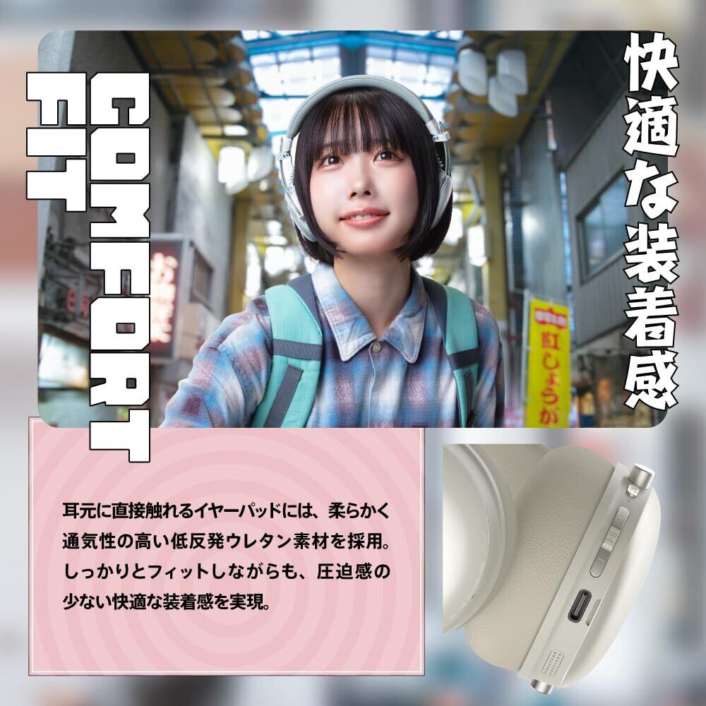【在庫処分】AVIOT WA-Q1 ノイズキャンセリング搭載 ワイヤレスヘッドホン|オンイヤー・55時間連続再生・急速充電対応 ドライバー・軽量設計・コンパクト折りたたみ式・マルチポイント接続対応 (ベージュ)