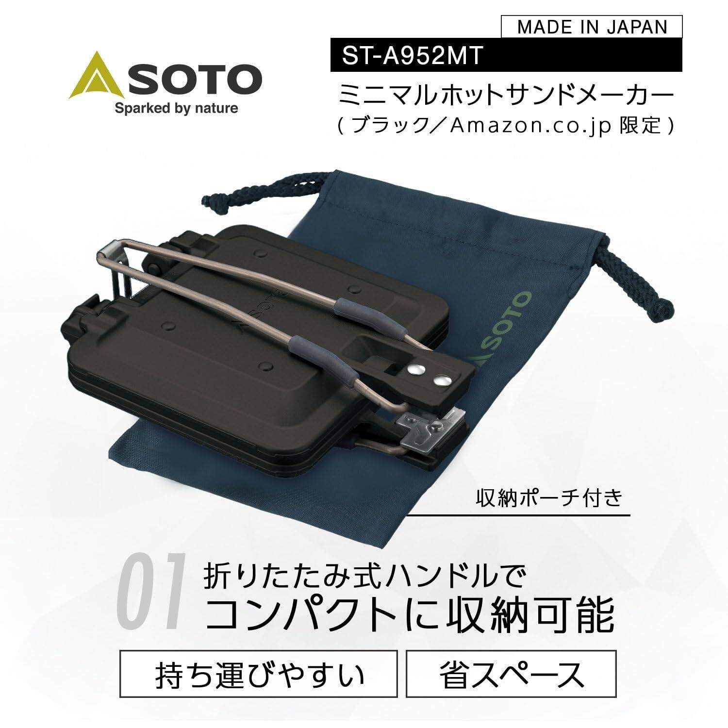【数量限定】ソト(SOTO) 日本製 ホットサンド 折り畳み ハンドル 軽量 コンパクト プレート着脱式 収納ポーチ シングル ガスコンロ アウトドア 防災 キャンプ ミニマルホットサンドメーカー ST-952 MT ブラック