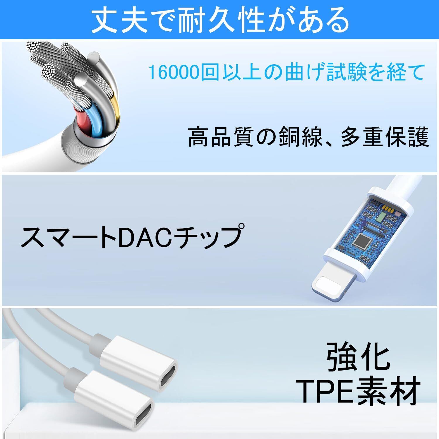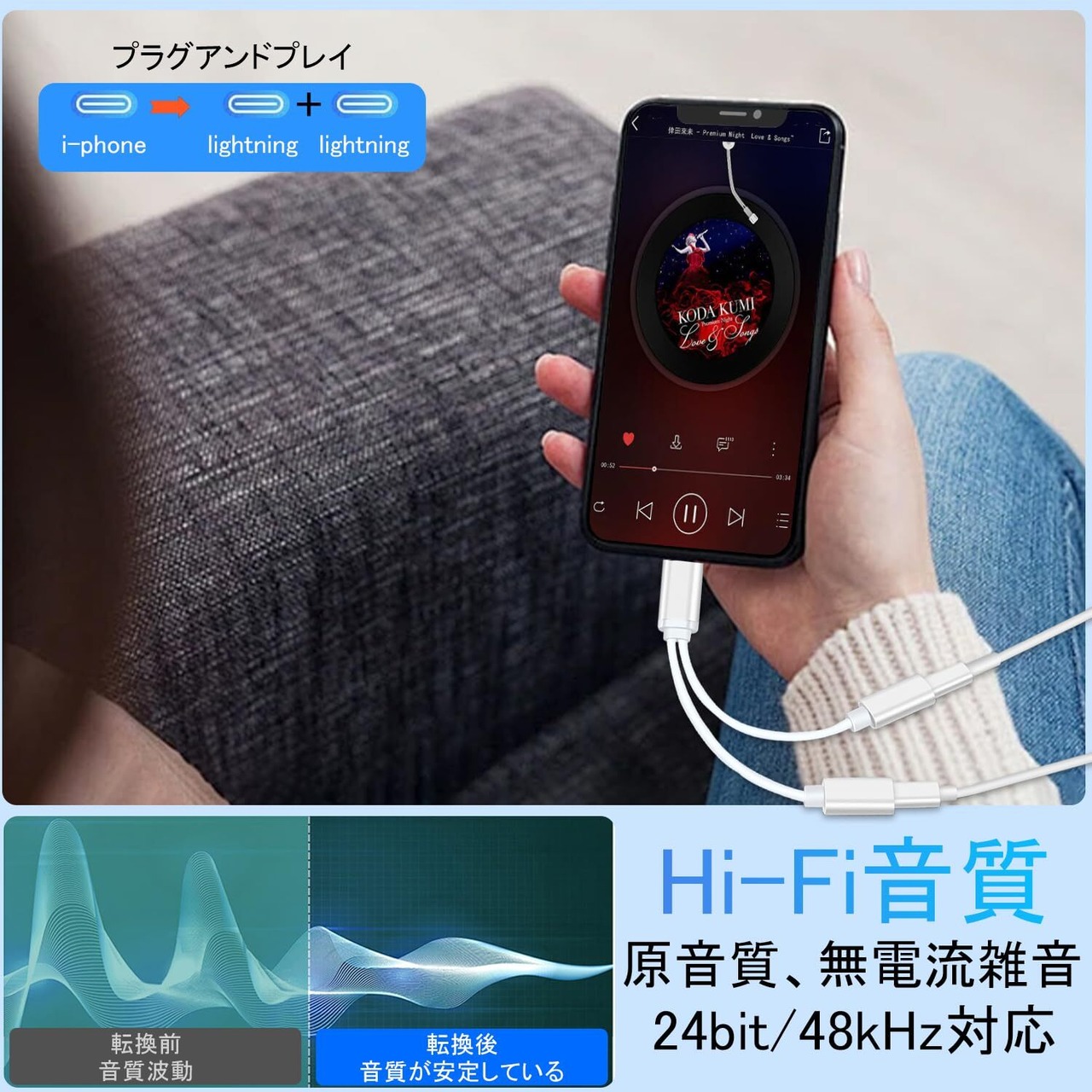 Lightning-Lightning変換アダプター 【2025新登場】i-Phone 2in1イヤホン変換アダプタ 充電しながらイヤホン 急速充電同時音 通話可能 音楽調節 搭載24bit/48KHz Hi-Fi音質 i-Phone14/13/12/11/8/8plus/7/7plusXS/SE/MAX/XS/X適用