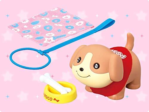 商品(左): なまえは「ポコちゃん」。ごはんをあげたり、リードをつけておさんぽしたり、おせわしてあげてね。