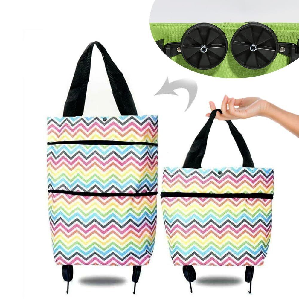【在庫処分】ショッピングカート 折り畳み式 軽量 エコバッグ 2輪キャスター付き買い物 おしゃれ 便利 コンパクト キャンプ 運動会 大容量 再利用可能な広々とした(波)