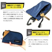 小銭やカード、紙幣を折り畳んで、コンパクトに収納できるマルチネックポーチ。内側に小分けできるポケットが3箇所、外側ポケットにはキーリングも搭載しているので、必要最低限な貴重品の携行に役立ちます。