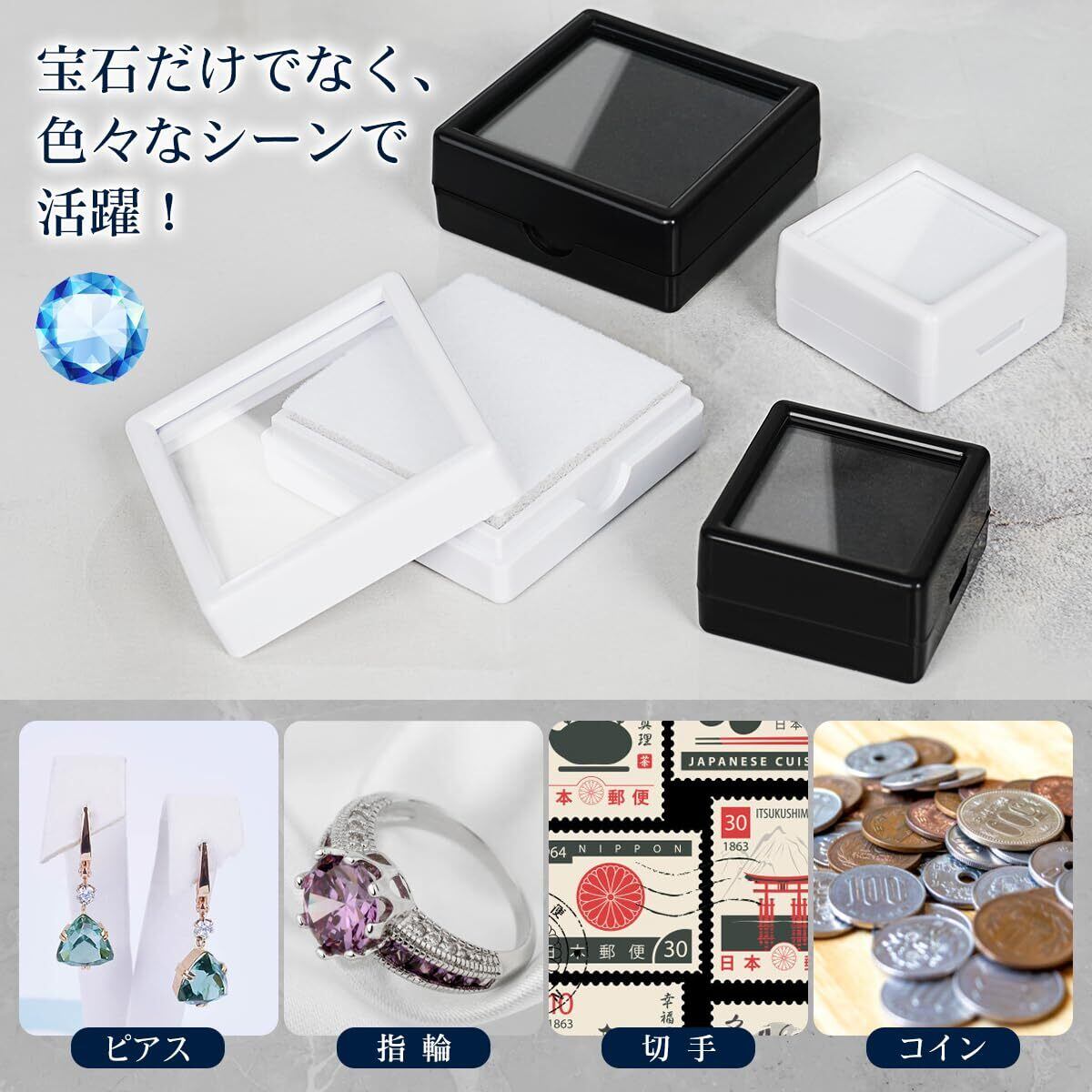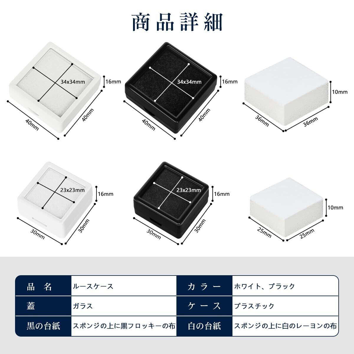 【商品仕様】品名:ルースケース カラー:ホワイト、ブラック 蓋:ガラス ケース:プラスチック 黒の台紙:スポンジの上に黒フロッキーの布 白の台紙:スポンジの上に白のレーヨンの布