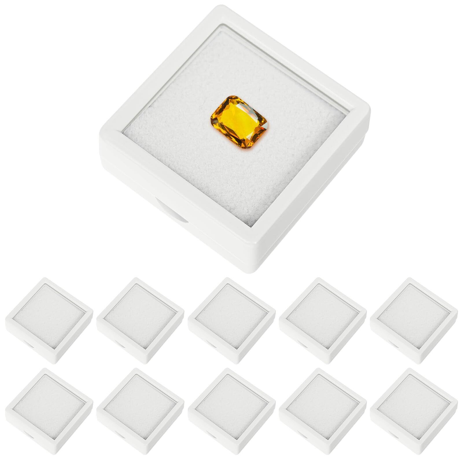 SENUN ルースケース 3cm 4cm 白 黒 クッション 10/20個セット 収納 小物入れ 窓付き 綺麗に見える ディスプレイ ルース ケース 裸石 宝石 天然石 鉱物 ジュエリー 小物 標本箱 宝石箱 コレクション 整理整頓 (ホワイト, 4*4cm 10個セット)