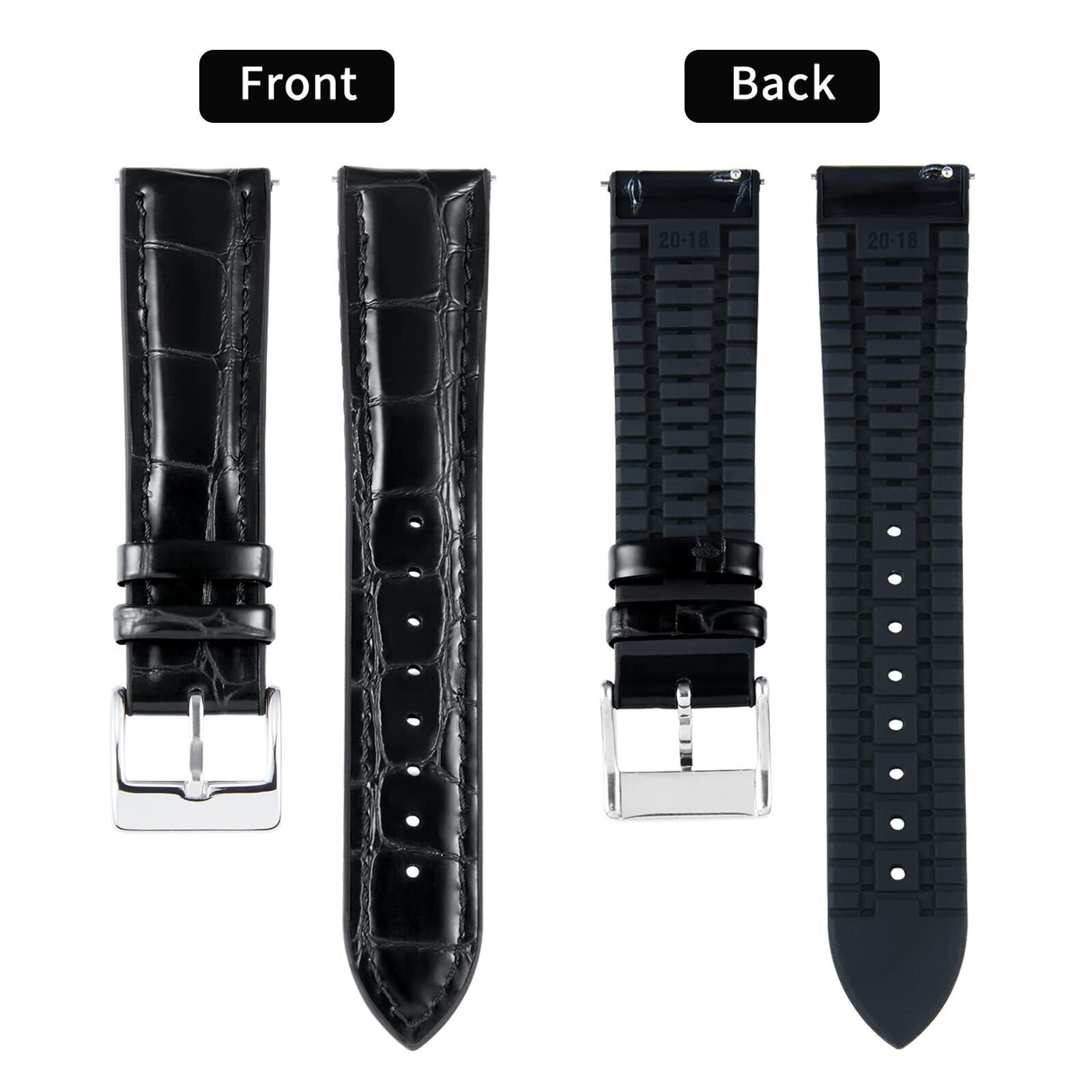[BINLUN] 革時計ベルト クイックリリース レザー腕時計バンド ワニ革模様ウォッチバンド 内側シリコン製 通気性 交換ベルト 男女兼用 14mm(ブラック/シルバー バックル)