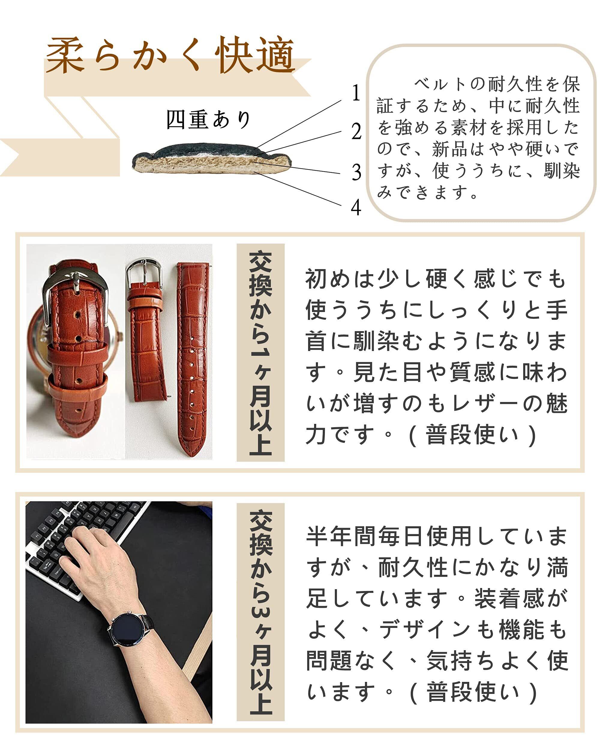 この腕時計ベルトは、クイックリリース機構を採用しているため、工具なしで簡単にベルトの交換が可能です!その日の気分やシーンに合わせて、手軽にスタイルを変化させることができます。ビジネスシーンからカジュアルな休日のスタイルまで、幅広くご使用いただけます。
