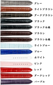 トンチャーメー 腕時計 ベルト 時計バンド 本革 カーフ レザー クロコ型押し 交換品 ピンク・ネイビー・ホワイト・レッド・パープル・ライトブルー 12-24mm