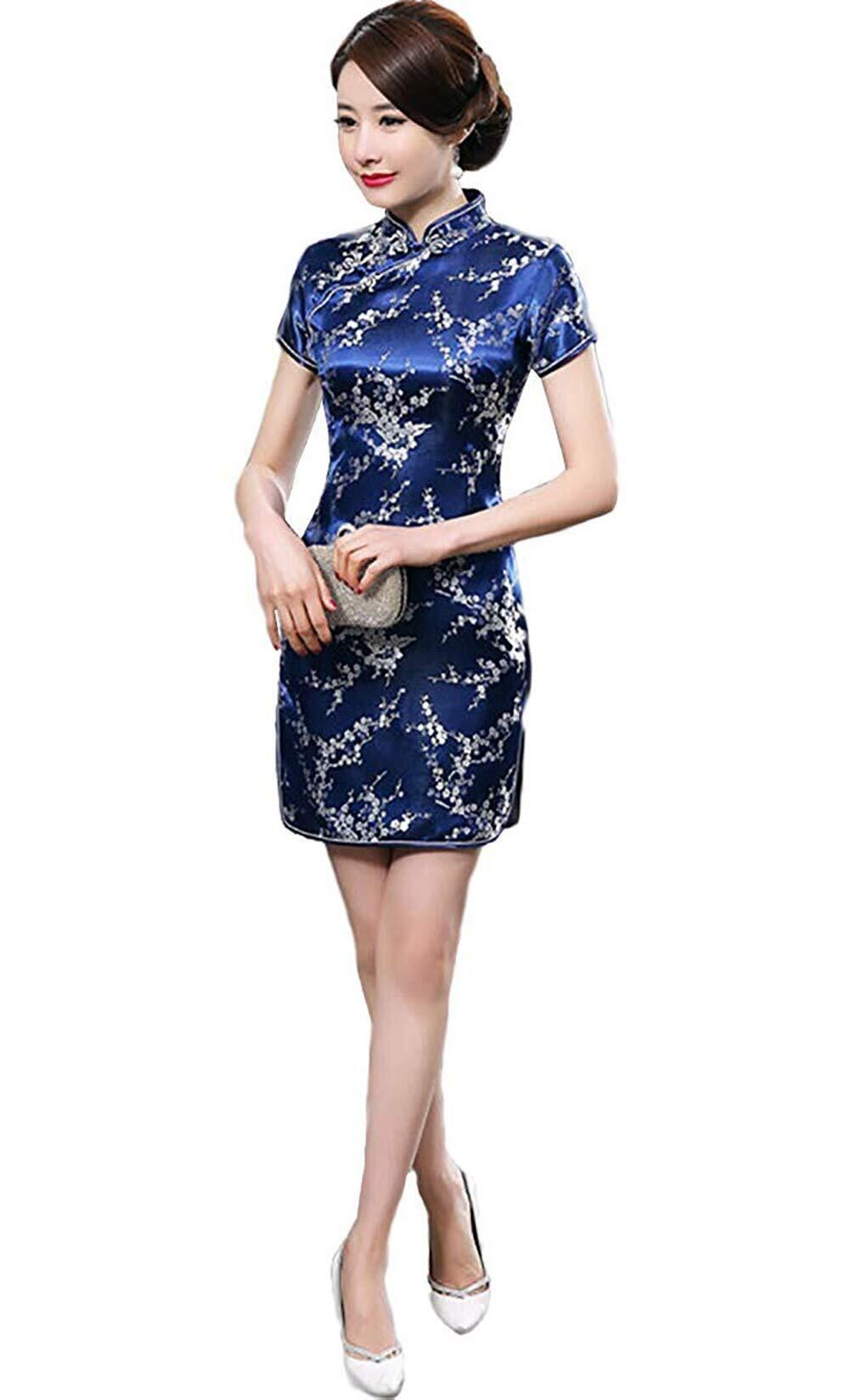 [CBCPOWER] ミニ チャイナドレス セクシーチャイナ服 梅花柄 光沢あり 短袖ミニドレス