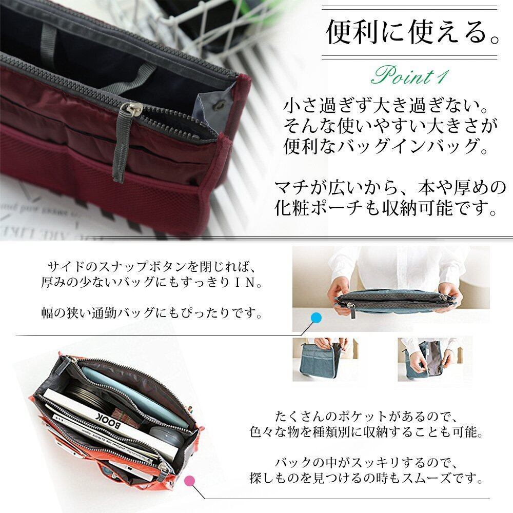 多彩なポケットを搭載したこのインナーバッグは、小物をスムーズに整理するための工夫が満載です。化粧品やスマートフォン、鍵など、さまざまなアイテムを適切に仕分けて収納でき、必要なものがすぐに見つかります。ストレスのない快適な毎日をサポートします!