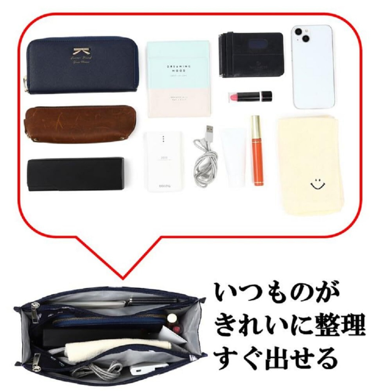 ちょっと大きめのこのインナーバッグは、豊富なポケットを備えており、小物を効率的に整理するための工夫が満載です。化粧品やスマートフォン、鍵など、様々なアイテムを適切に仕分けて収納できるため、必要なものがすぐに見つかります。日常生活をよりスムーズにサポートします!