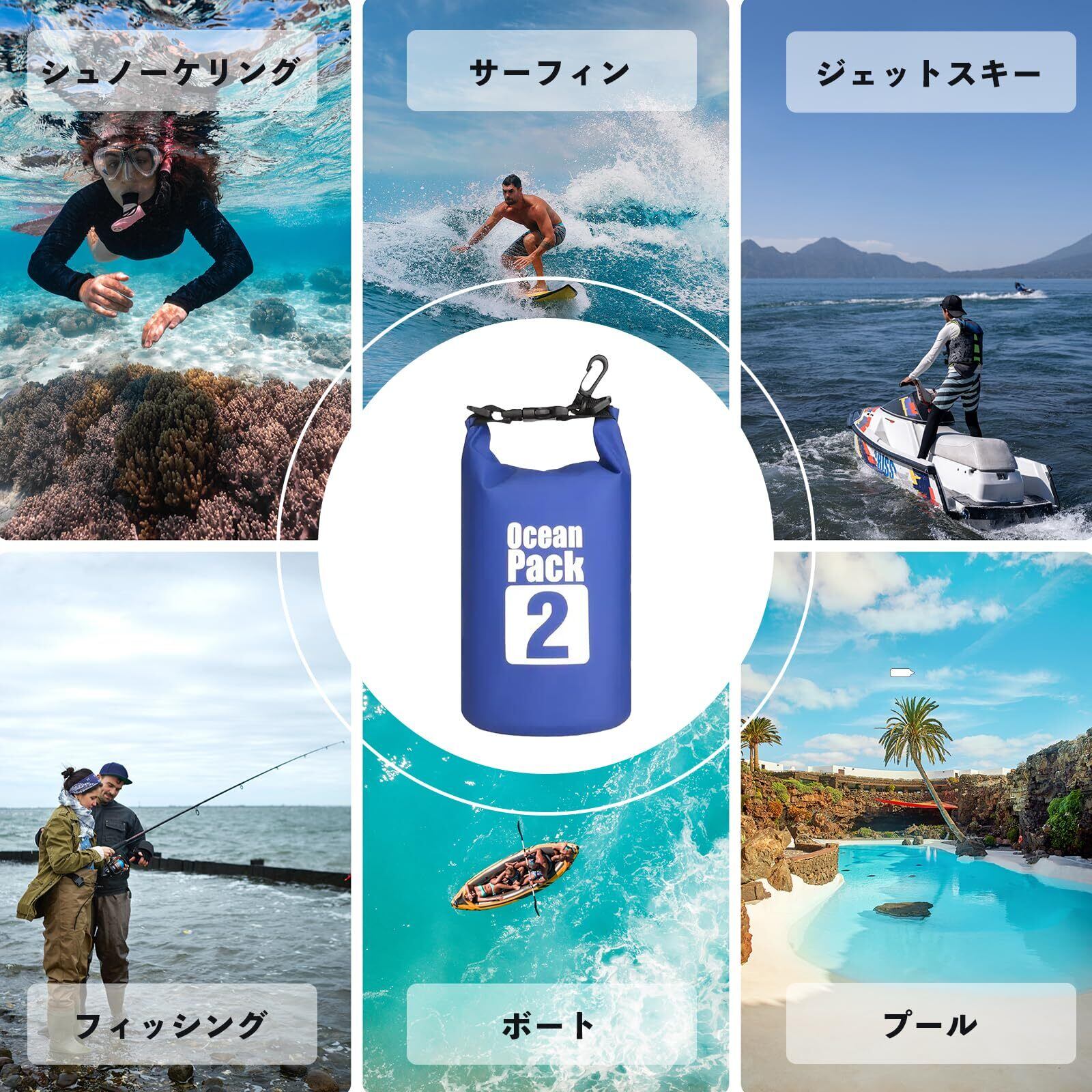2Lの収納容量を持ち、タオルや水着、貴重品などをしっかり収納可能です。アウトドアアクティビティの際に必要なアイテムをすべてまとめて持ち運べるため、快適に過ごすことができます。
