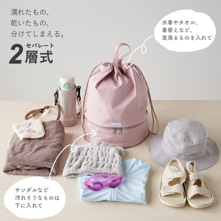 2層式のプールバッグ。濡れたもの、乾いたもの、分けて入れられる。
