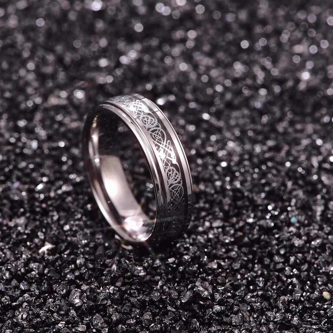 083基地 メンズ 指輪 リング タングステン ドラゴン 竜紋 炭素繊維 Tカットエッジ 横幅6mm 平打ち シルバー 真空メッキ 20号