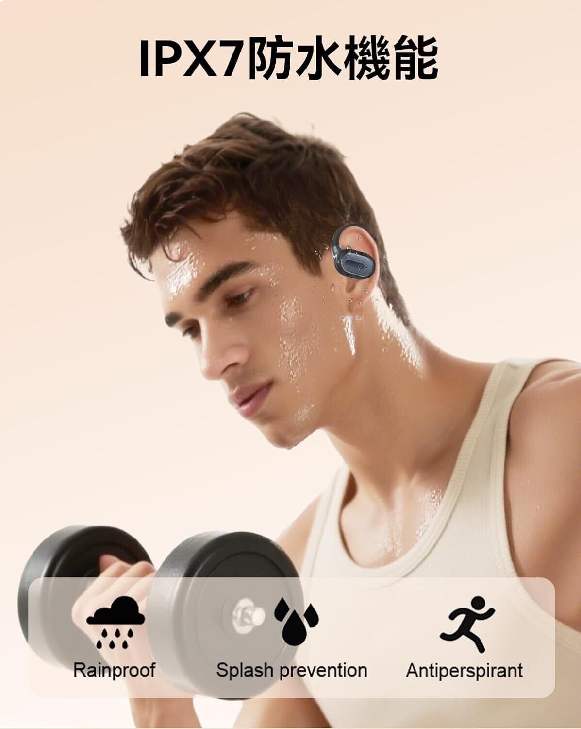 【OWSイヤホン&IPX7防水】IPX7 防水防汗。高い防水性能を実現した完全ワイヤレスイヤホンは、ジムやランニング、フィットネスなどのスポーツ中、雨の日でも安心して使用できます。 ※ご注意:充電ケースは防水仕様ではありません。