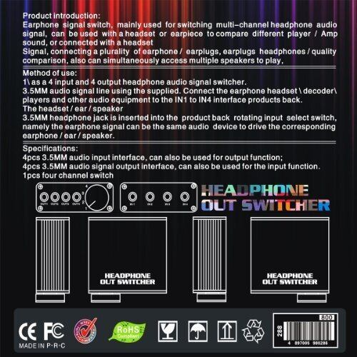 入力は切り替えできますが出力は切り替えができません。ご了承ください。前端四个3.5mm口信号同时输入,旋钮切换后端,后端四个3.5mm口不同信号输出,旋钮切换