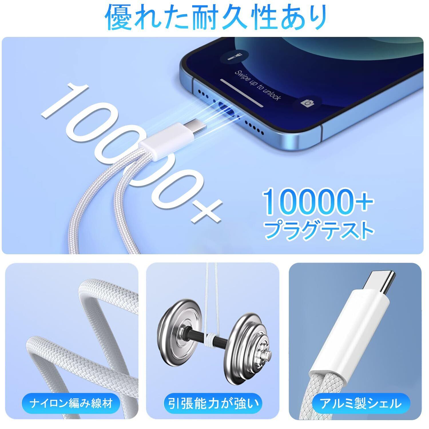【PD 60W 超高速充電 & 多協議対応】USB-C-3.5mm Aux & 充電アダプターは、強力な充電チップを内蔵し、60W PD充電をサポートします。 PD、QC、AFC、PPS の急速充電規格を満たしており、ほとんどのデバイスの急速充電に適しています。 充電ケーブルは、様々なデバイスに必要な電圧と電流を特定して満たし、安定性とセキュリティを確保してデバイスを保護します。 ※注: PD急速充電をサポートするオリジナルのPDアダプターと充電ケーブルを使用してください。
