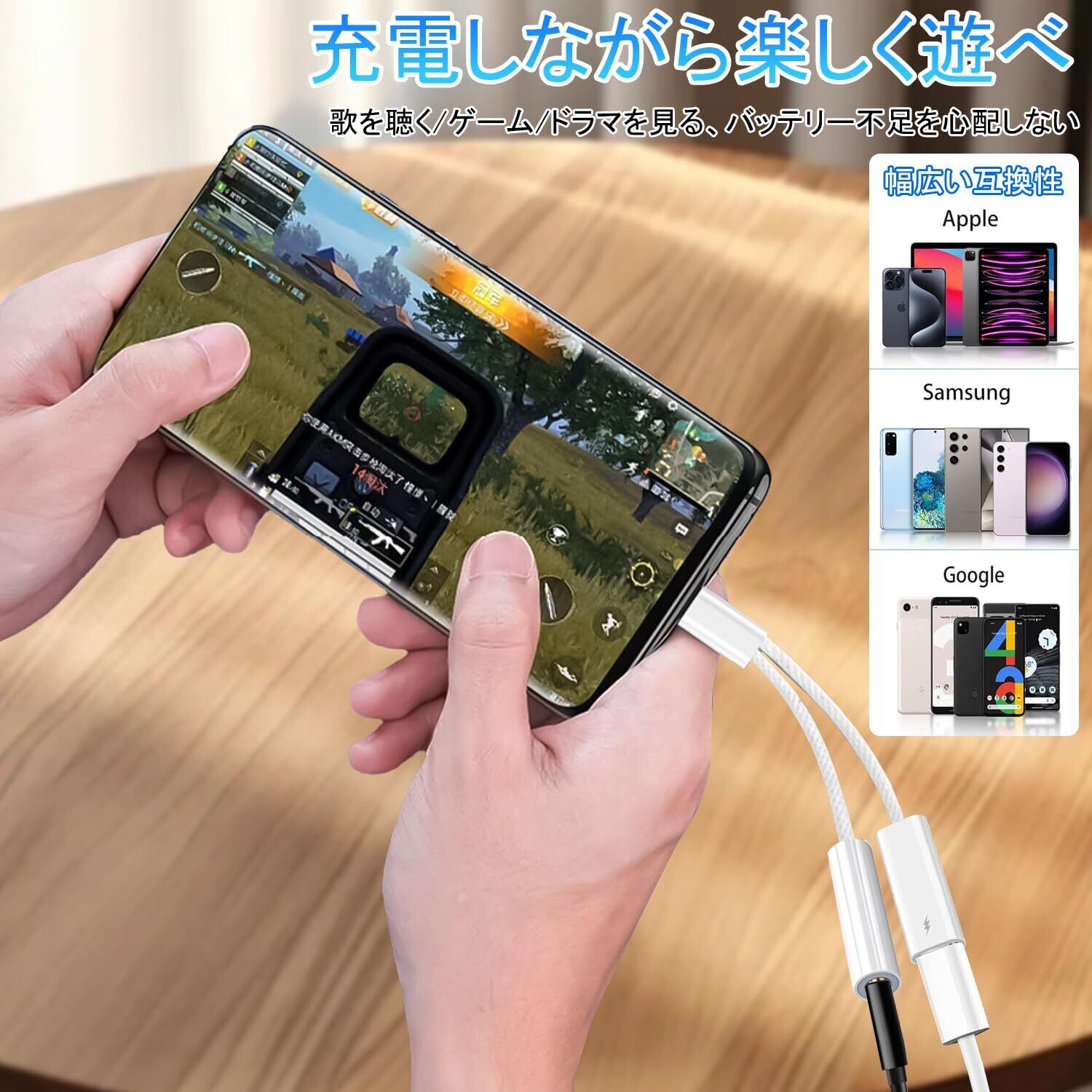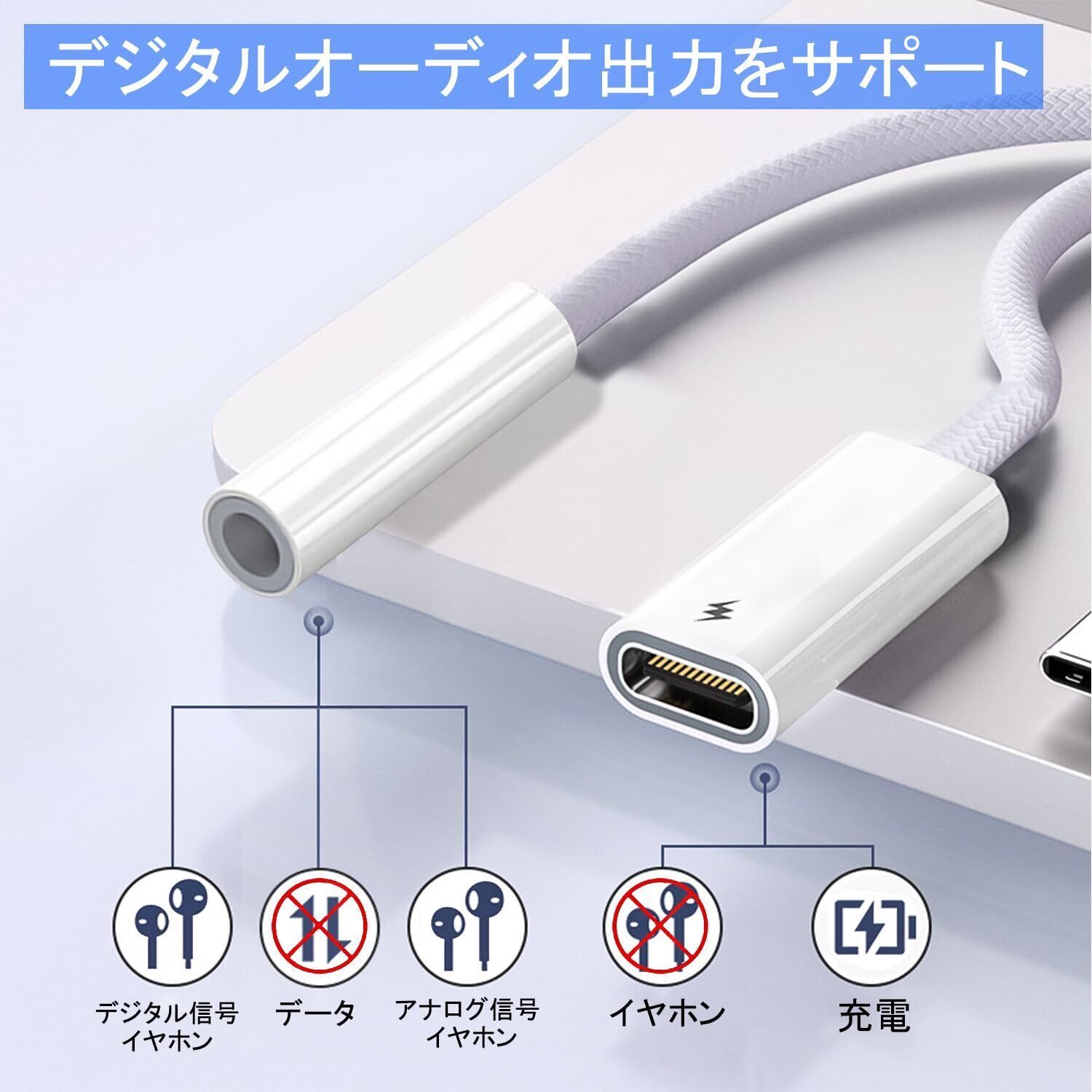 【充電しながらハイレゾ音質享受】 タイプC to 3.5mm オーディオ変換アダプターを使用すると、Hi-Resオーディオと PD 60W の高速充電が可能になり、デバイスを急速充電しながら、音楽を聴いたり、通話したり、ゲームをしたり、ビデオを視聴したりできます。携帯電話のバッテリー切れを心配することなく、美しいオーディオの世界に完全に浸ることができます。 ※注: 充電ポートはデータ転送をサポートされていません。