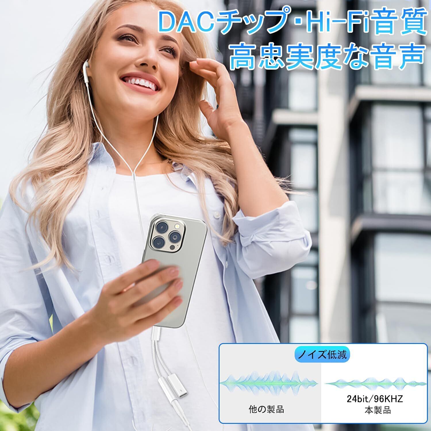 このアダプターは、PD 60Wの高速充電に対応しており、音楽を聴きながらデバイスを充電することが可能です。移動中や外出時でも充電を気にせず、音楽を楽しむことができます。音楽と充電を一つにまとめた便利なアイテムです。