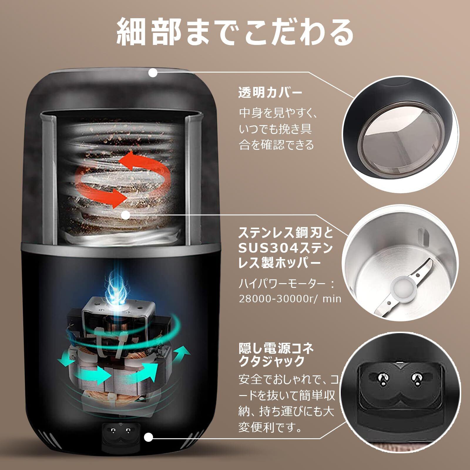 【在庫処分】コーヒーミル 電動 カッター 粉末 コーヒー豆 ひき機 数秒細挽き 80g大容量 ワンタッチ操作 豆挽き/緑茶/唐辛子/胡椒/山椒/調味料/穀物を挽く 粒度調整 コーヒーグラインダー ハイパワー 一台多役 掃除ブラシ付 お手入れ簡単 誕生日/新年祝い プレゼント