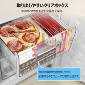 【冷凍室の見やすさ&使いやすさ】透明クリアボックス採用で中身が一目瞭然!食材の管理や取り出しがスムーズにでき、食品ロス削減にも貢献。一人暮らしや小家族の日常使いに最適です。