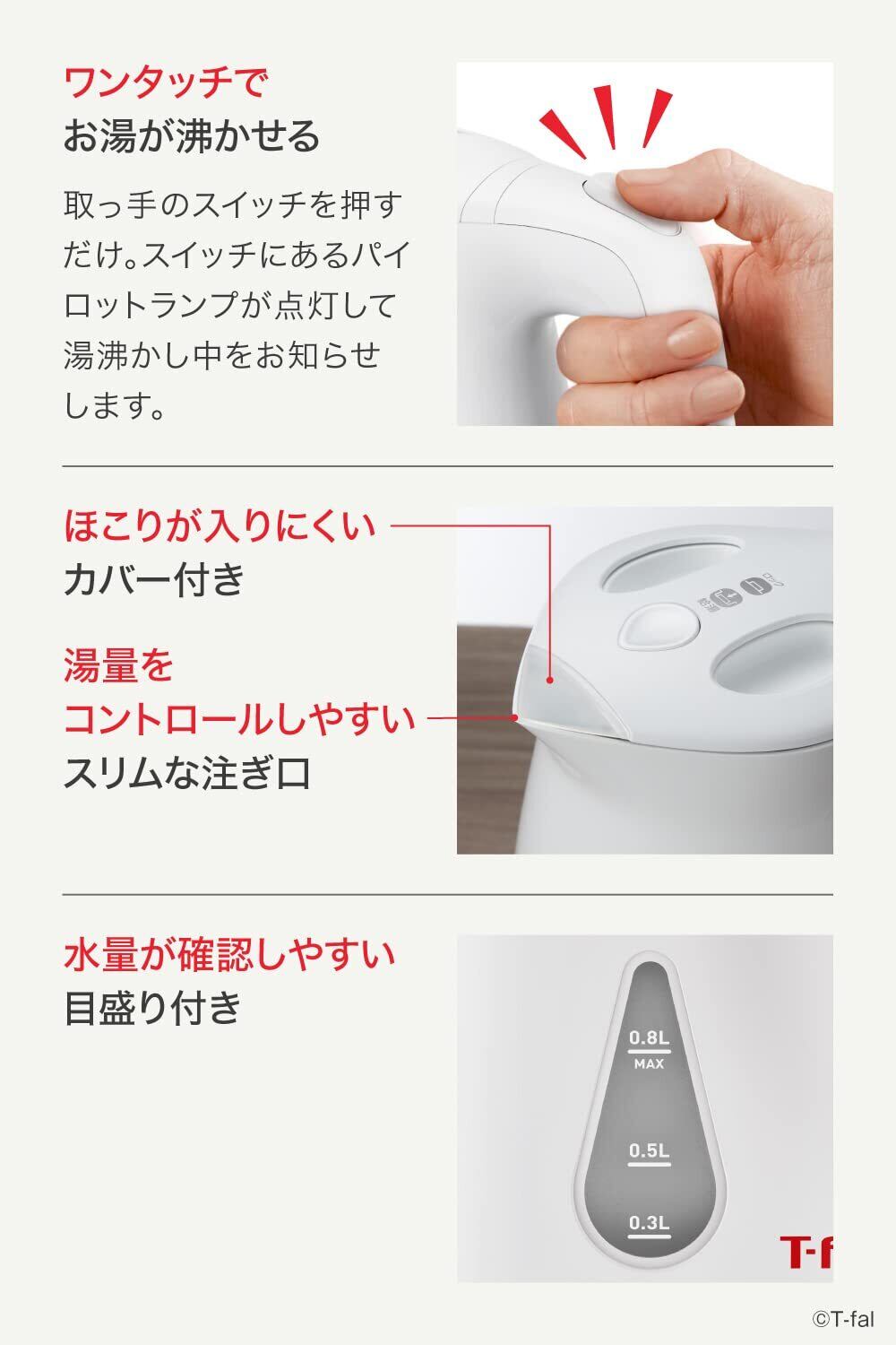 ティファール 電気ケトル 0.8L 転倒お湯もれロック 省スチーム設計 「アプレシア・プラス ロック ホワイト」 KO5401JP
