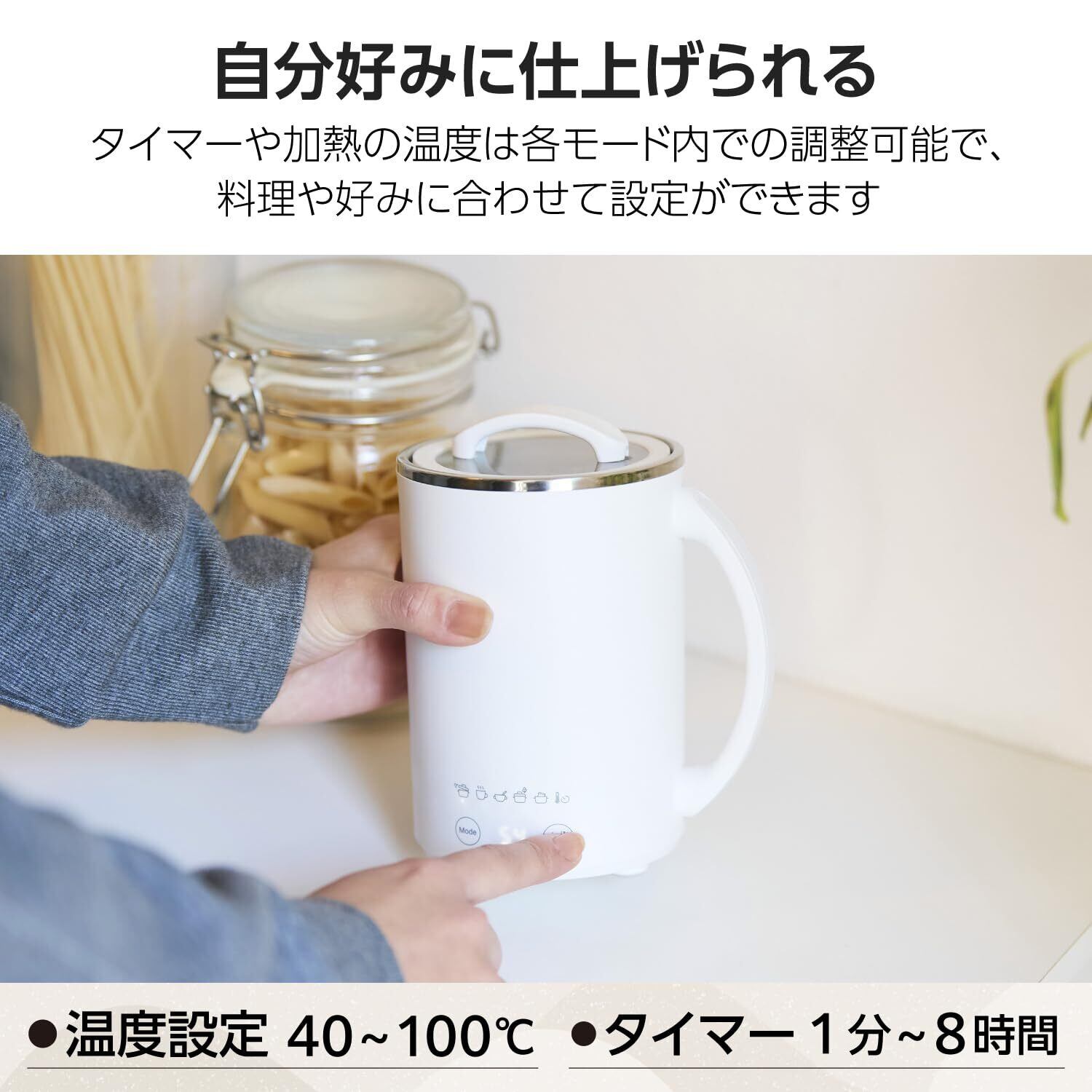 エレコム マグカップ型電気なべ 電気ケトル 500mL クックマグ 【 沸かす 煮込む 保温 スープ レトルト 手動 】6モード Cook Mug plus ケーブル長1.5m ホワイト HAC-LEP01WH